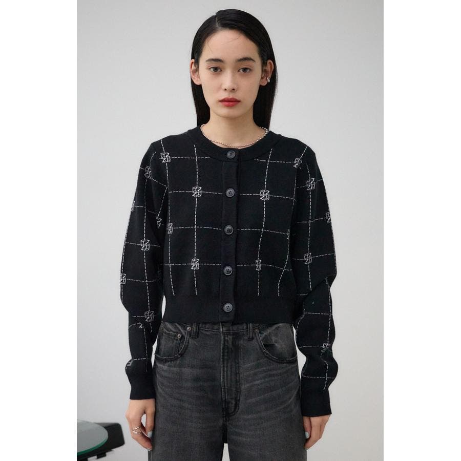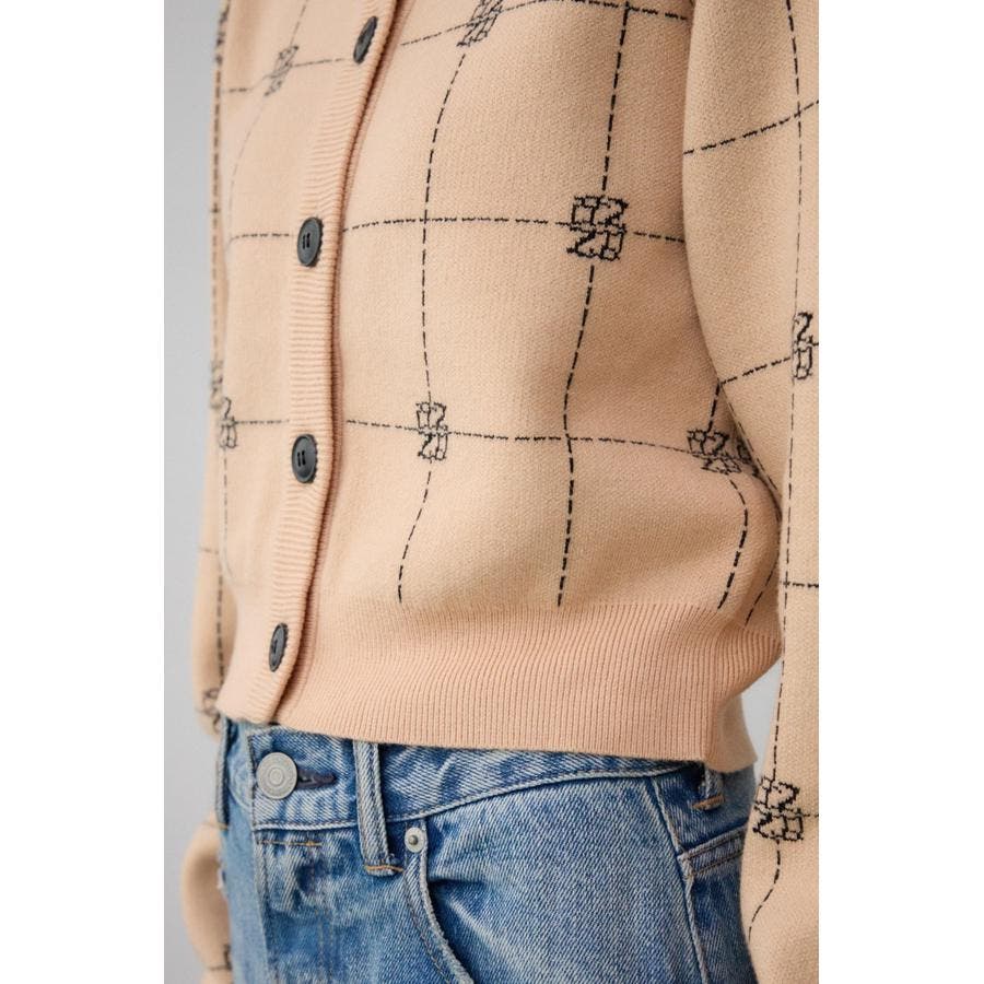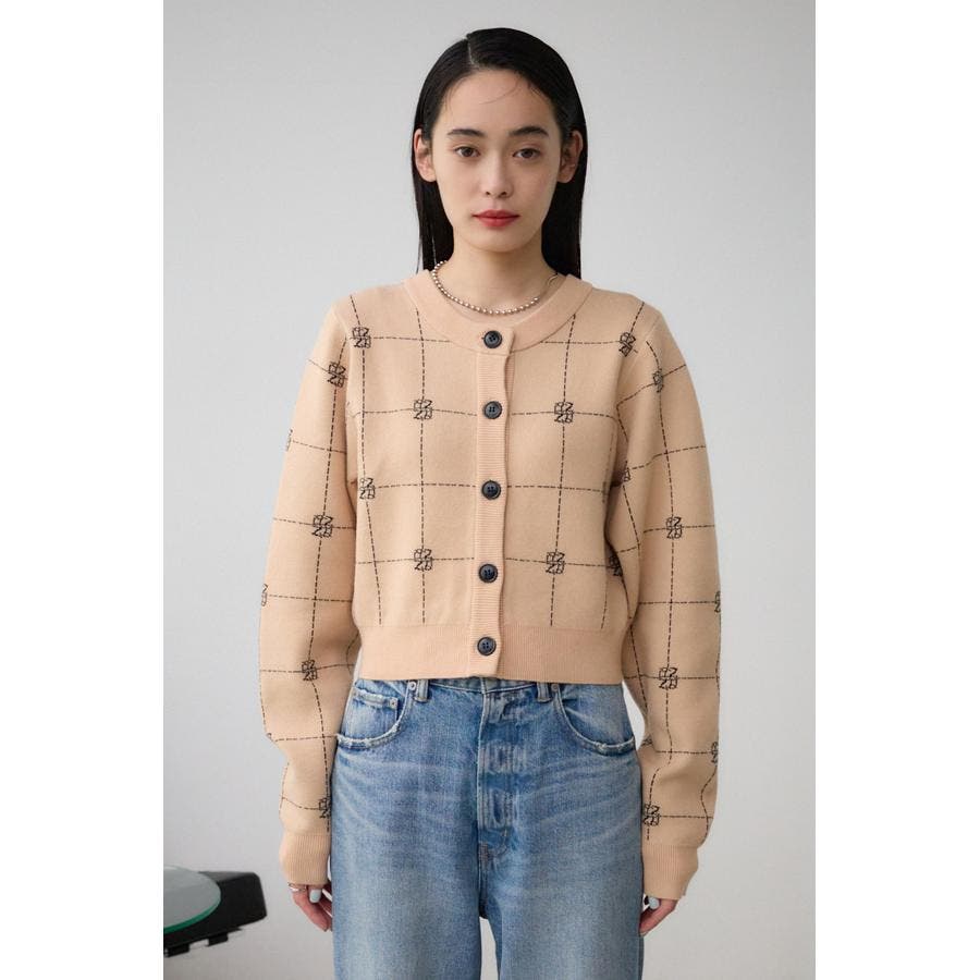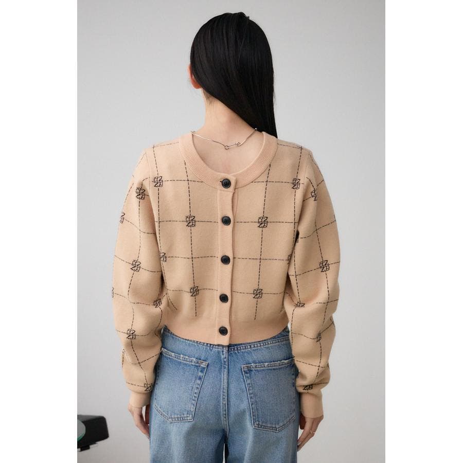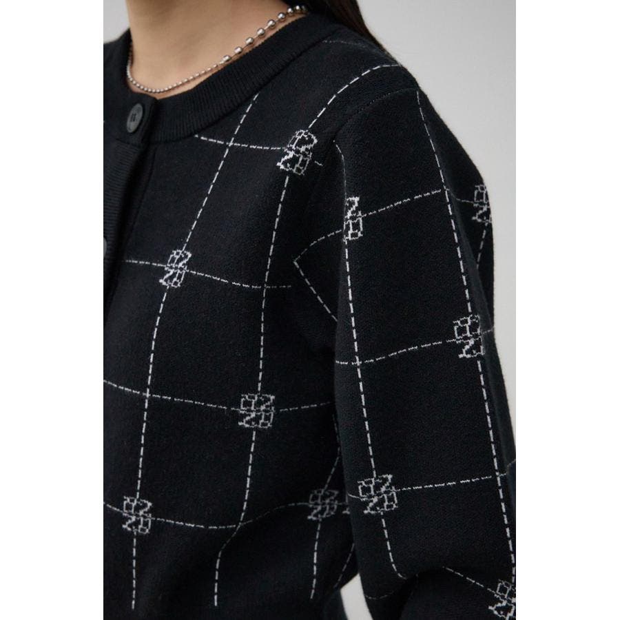 コンパクトなシルエット、クロップド丈がトレンドのAZオリジナルロゴをあしらった幾何学柄のニットです。