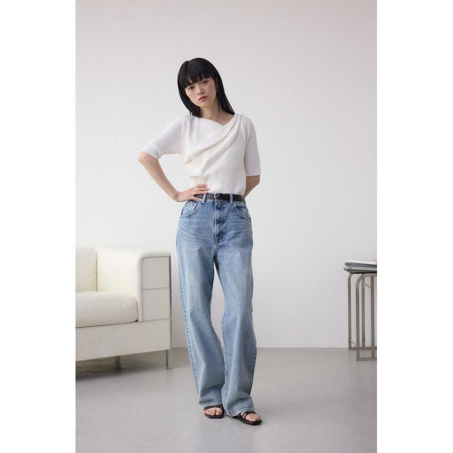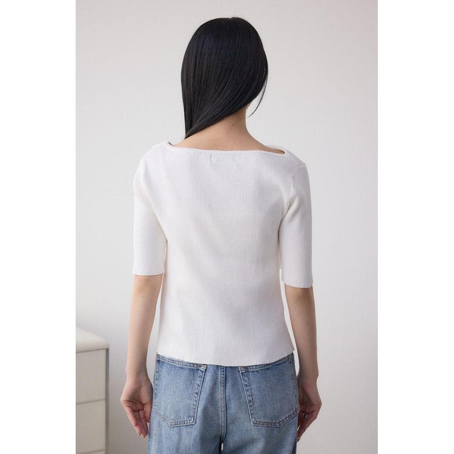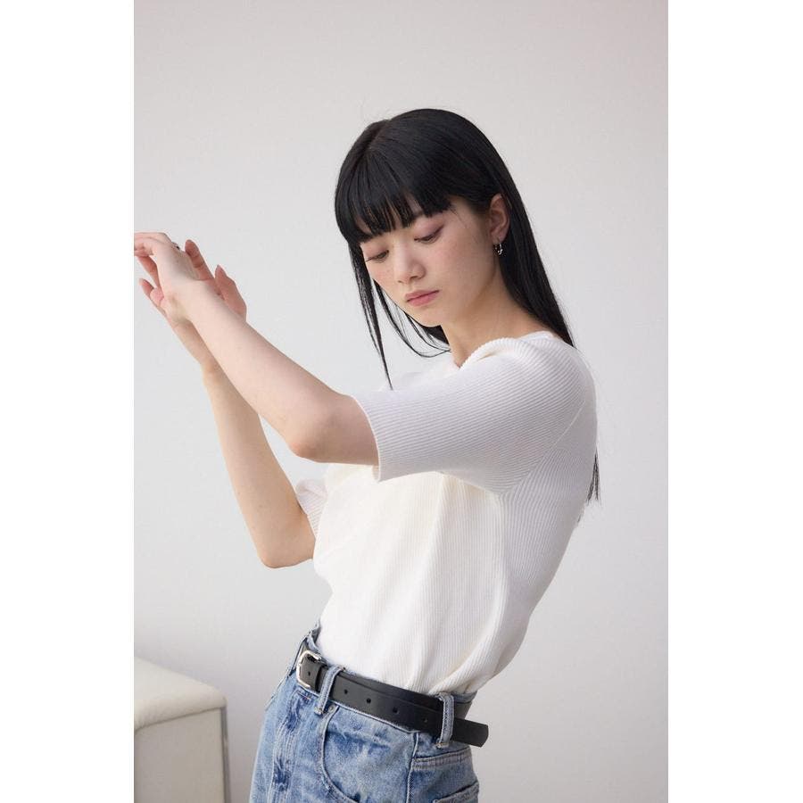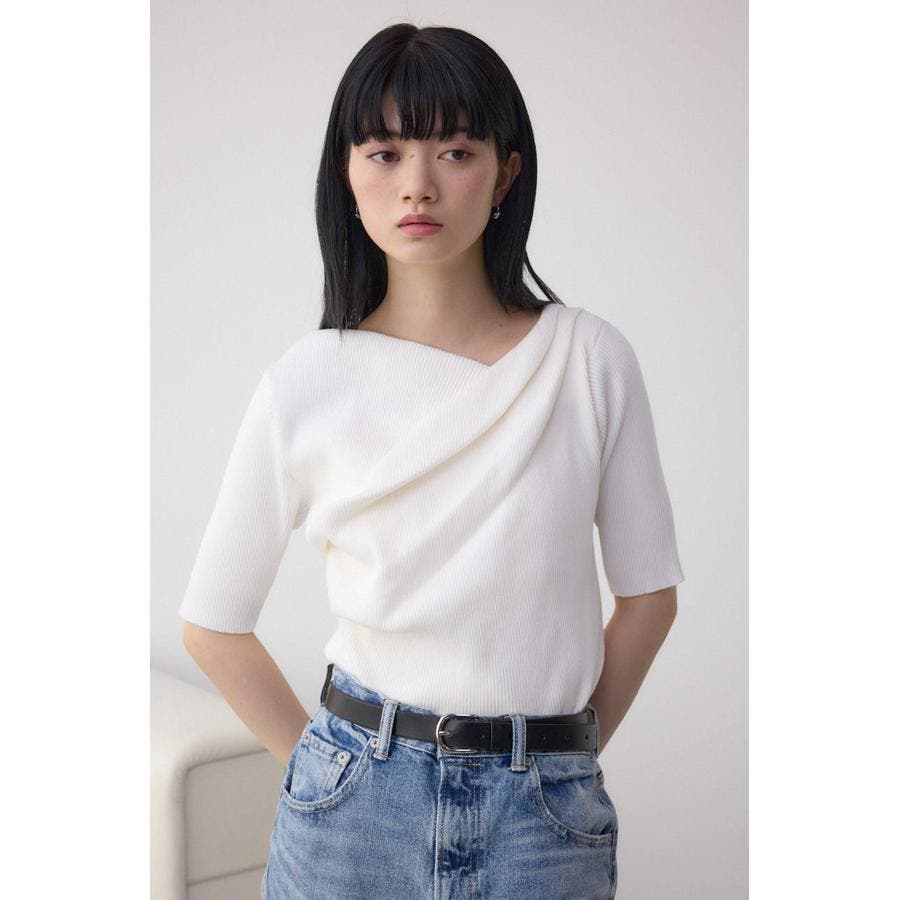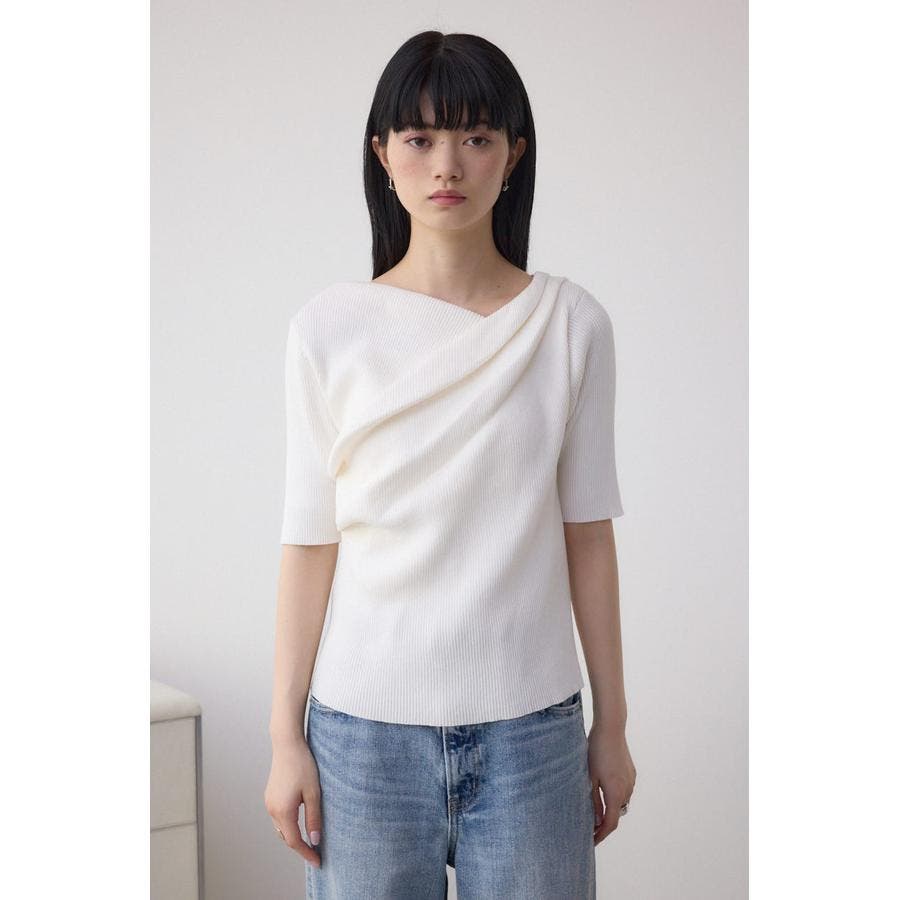 ドレープデザイン5分袖リブニット