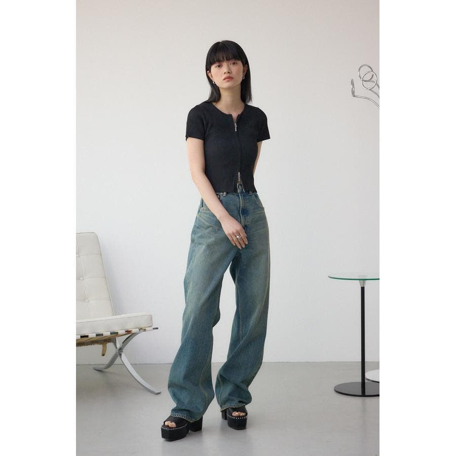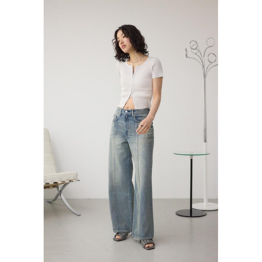 コンパクトな丈感なのでハイウエストなボトムでスタイルアップ。