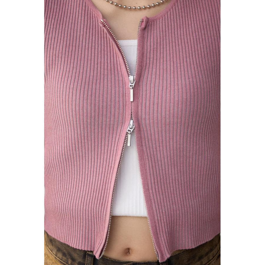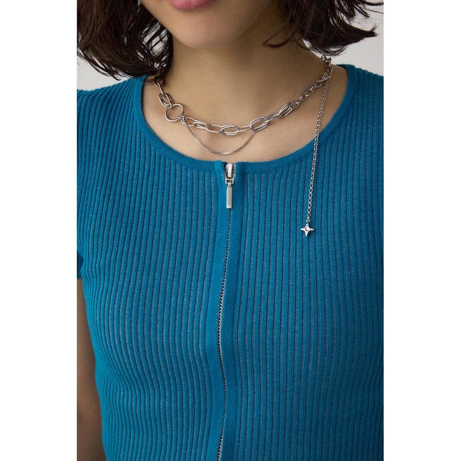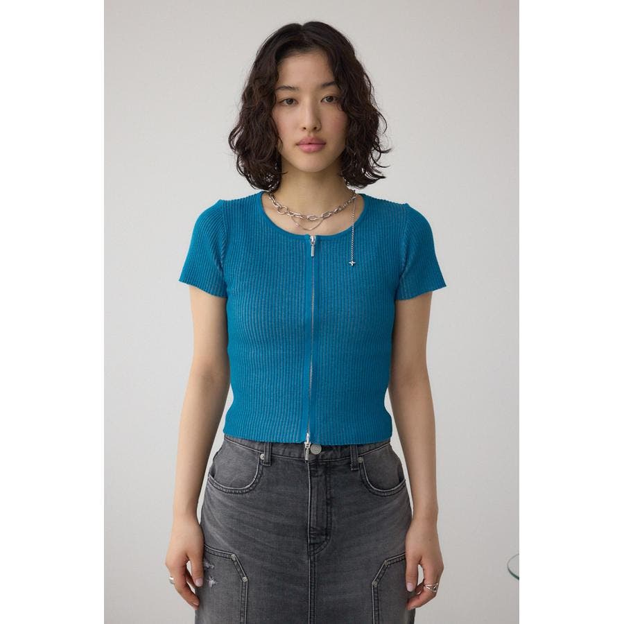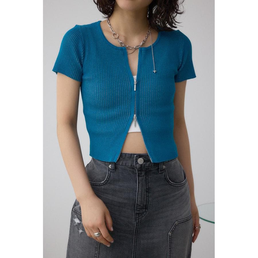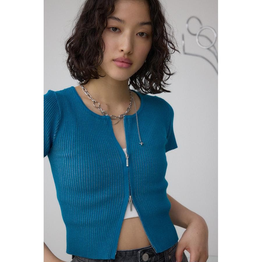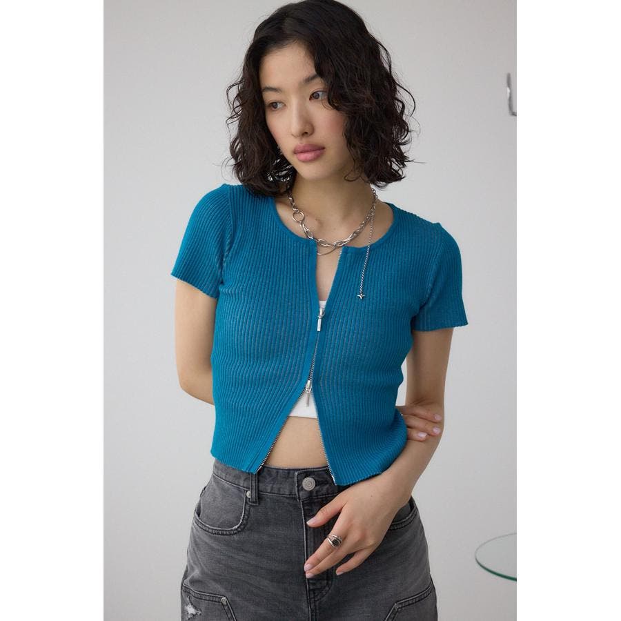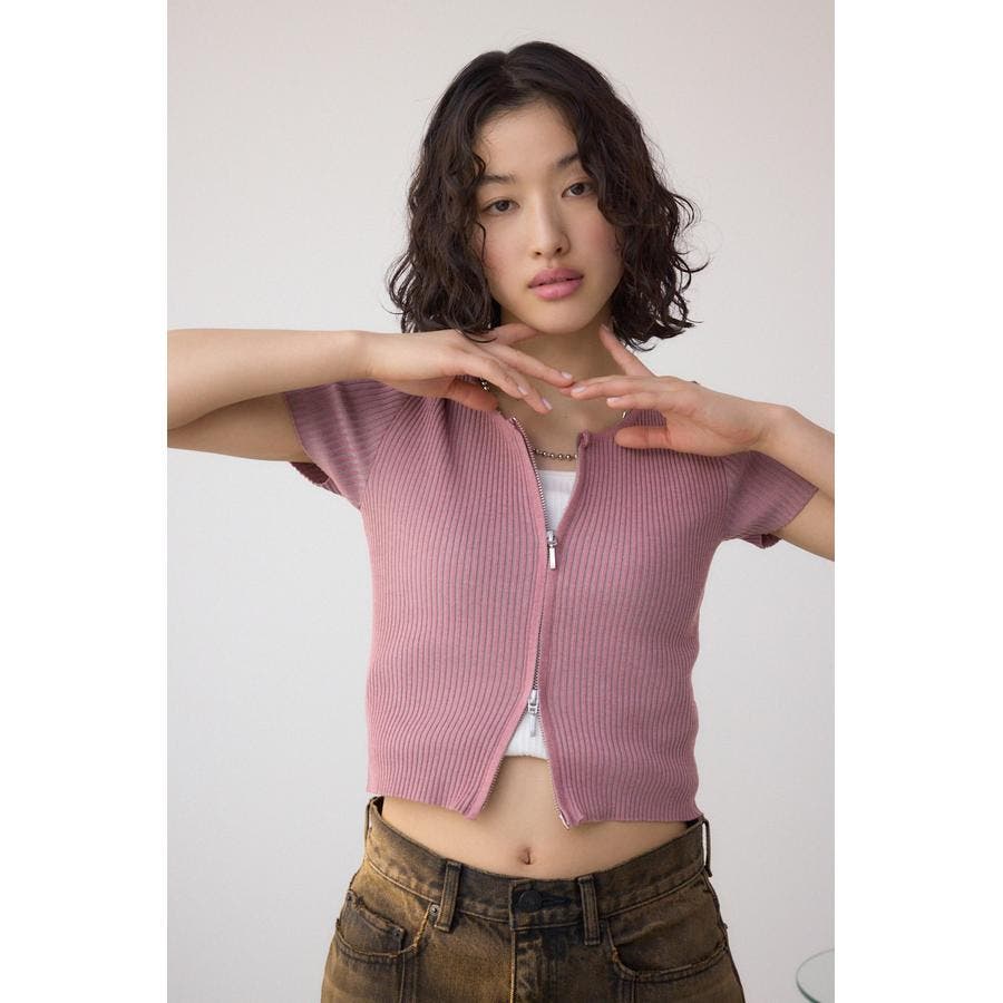 250ISC70-336B Wジップ配色リブカーディガンの半袖バージョンです。