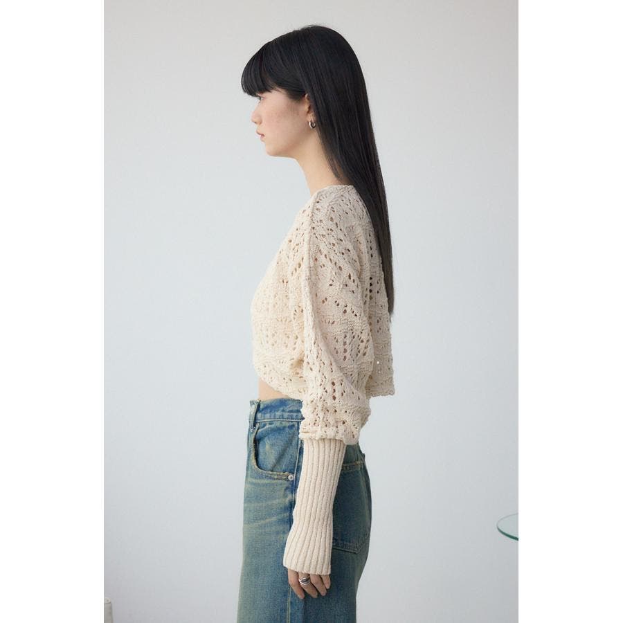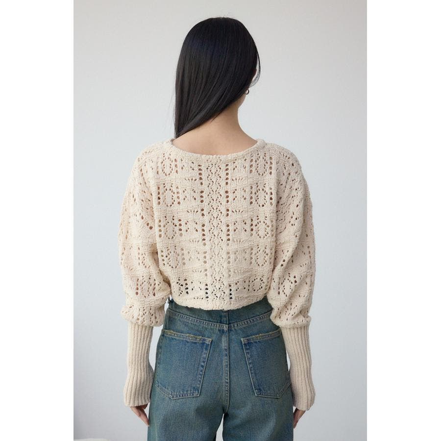 繊細なクロシェ編みを使用した女性らしいニットボレロです。