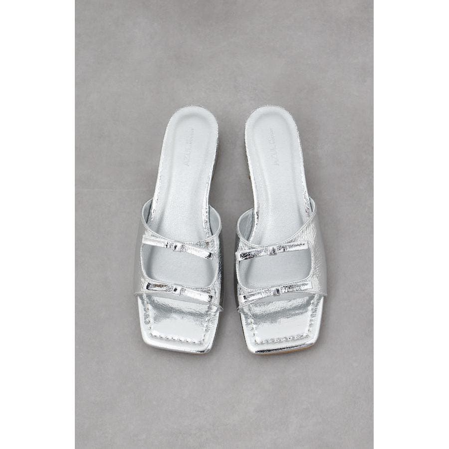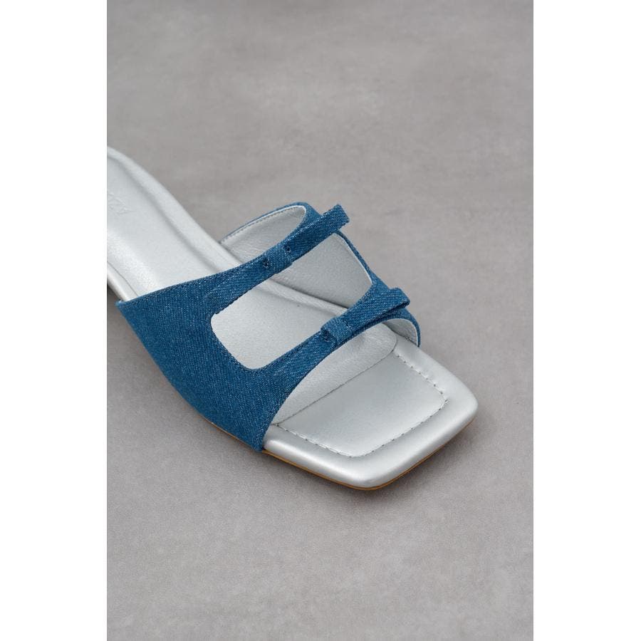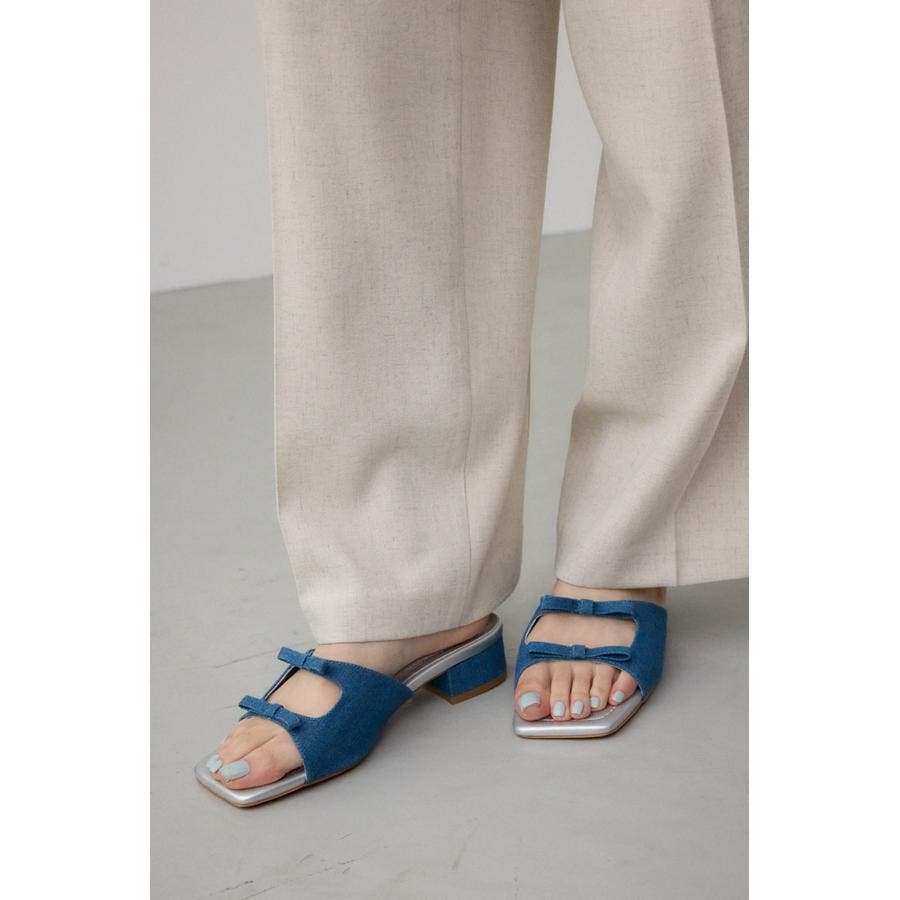 ダブルリボンスクエアトゥサンダル