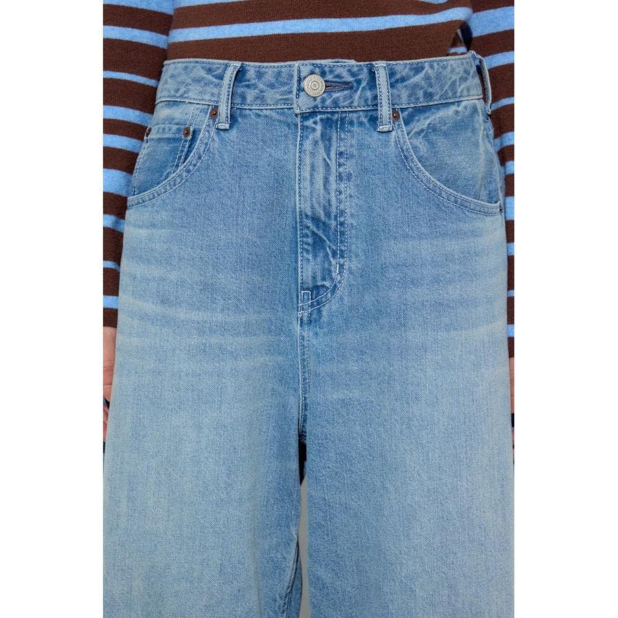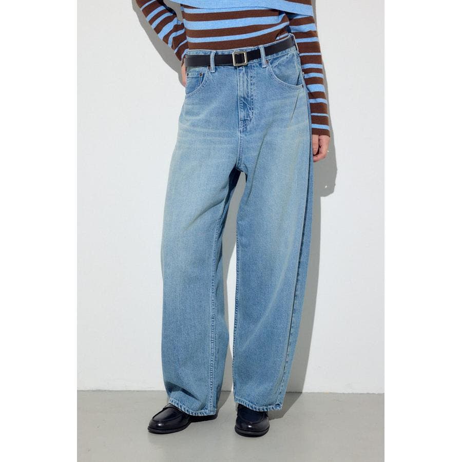 柔らかく落ち感のあるライトオンス素材で、トレンド感のあるカーブシルエットが美しいハイウエストデニム。