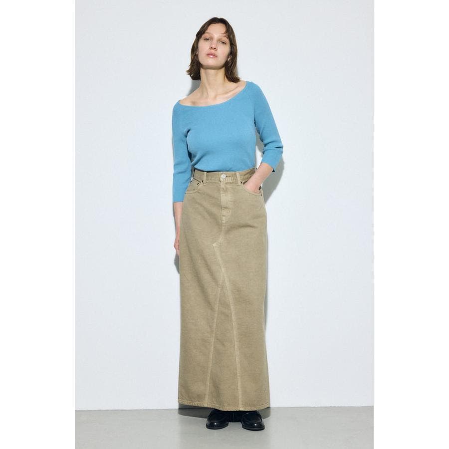 ベーシックで着回し力の高い、AZUL DENIMのカラーストレートデニムスカート。