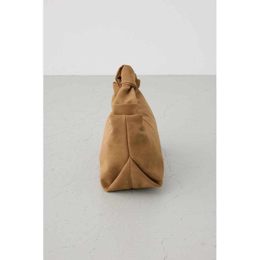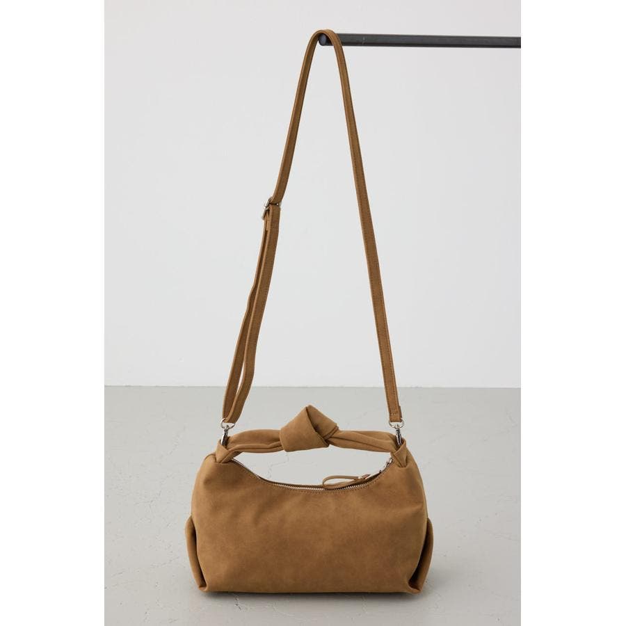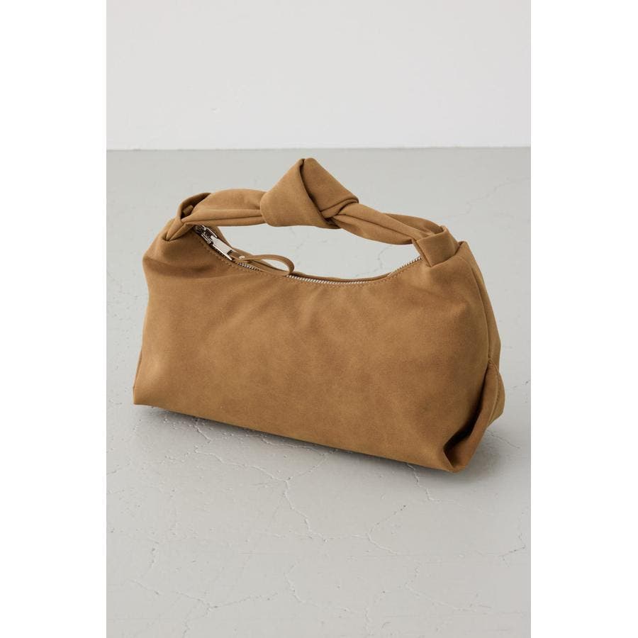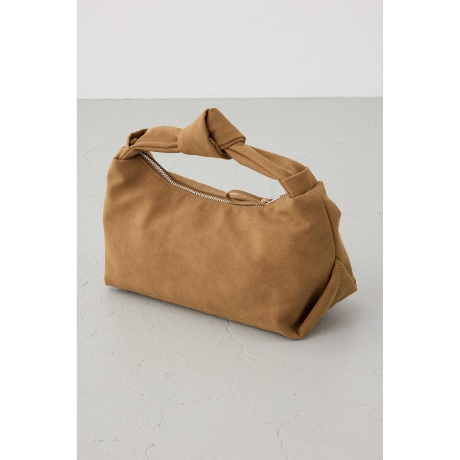 トレンドのスエード素材を使用した、ハンドル部分の結び目がポイントのミニバッグになります。