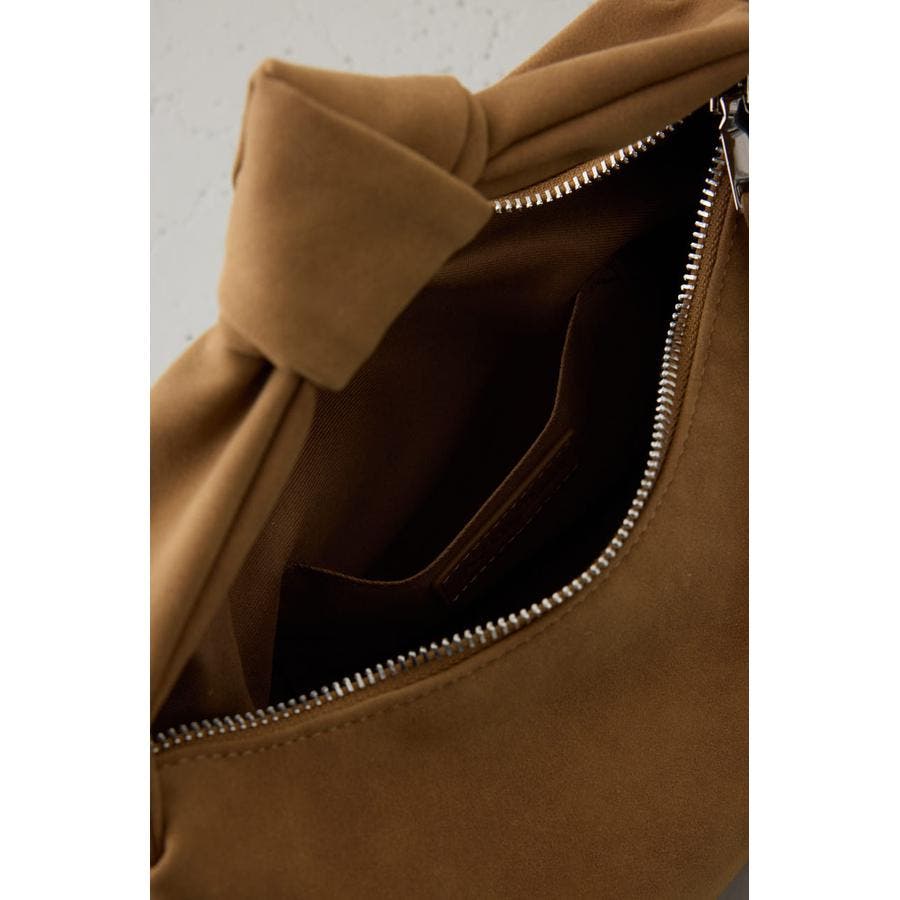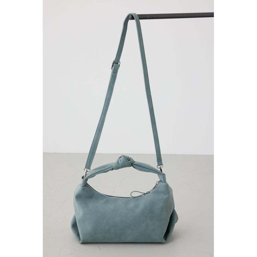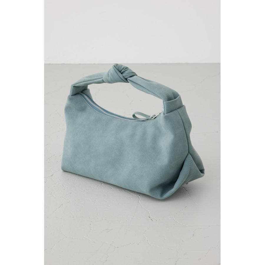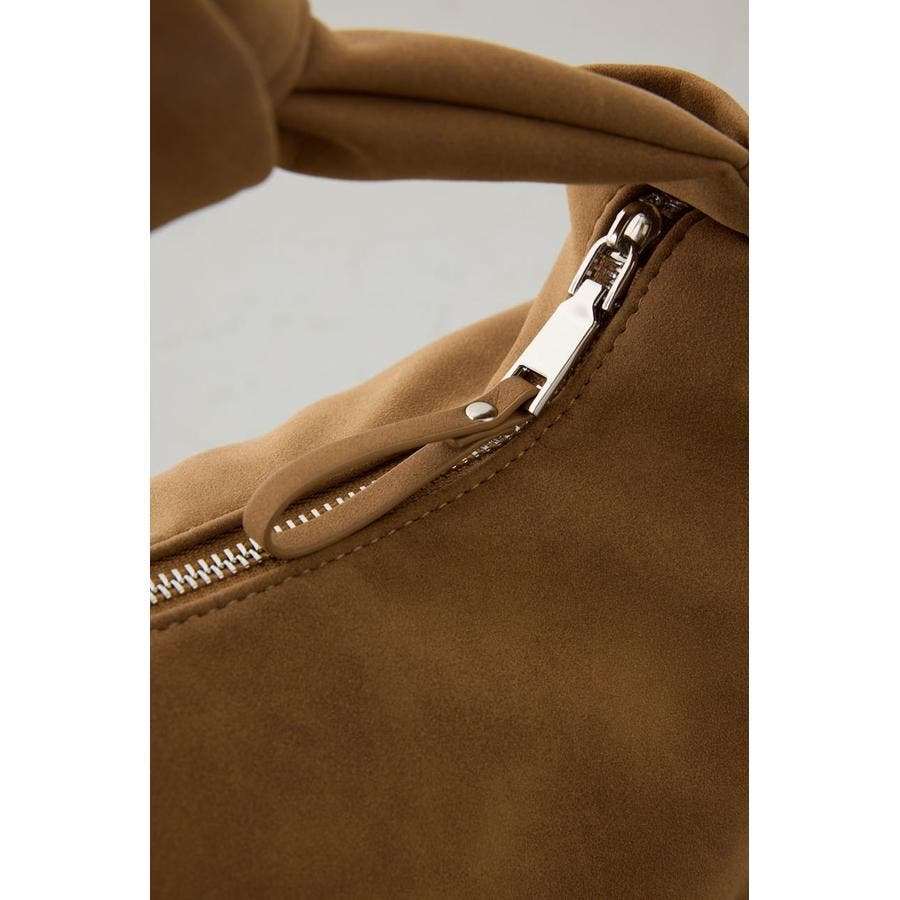 トレンドのスエード素材を使用した、ハンドル部分の結び目がポイントのミニバッグになります。