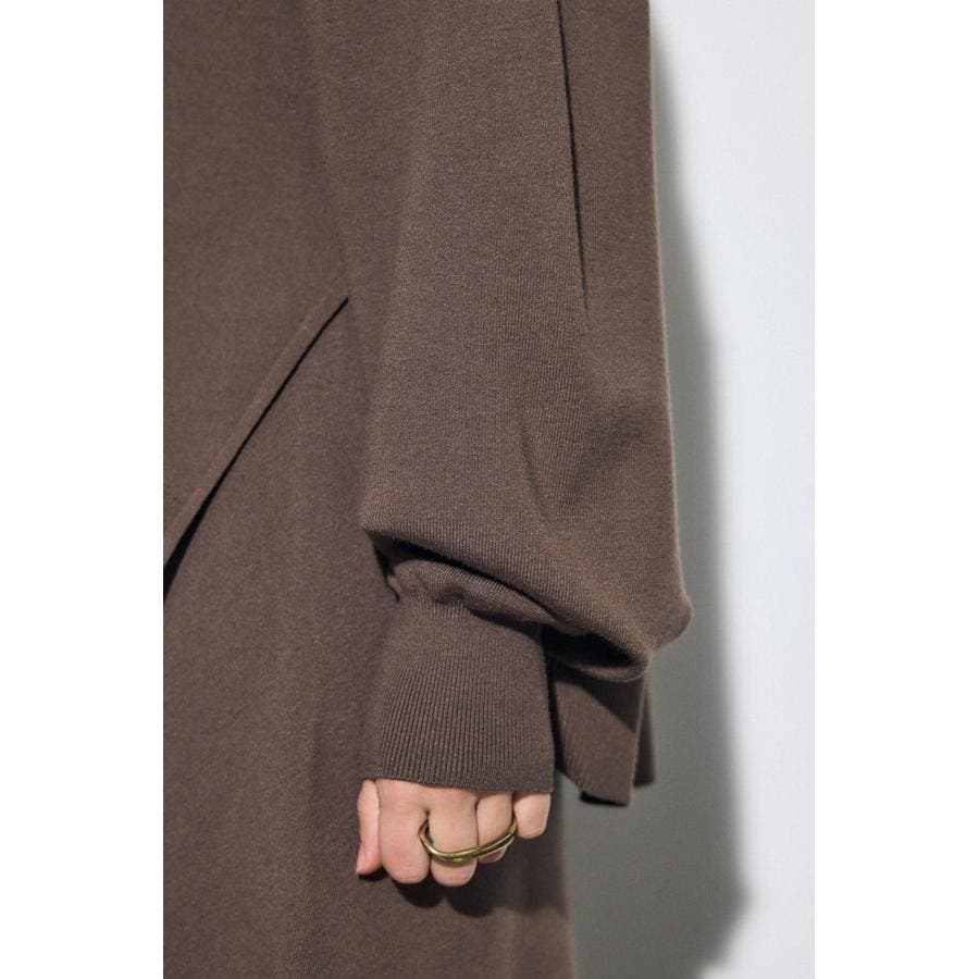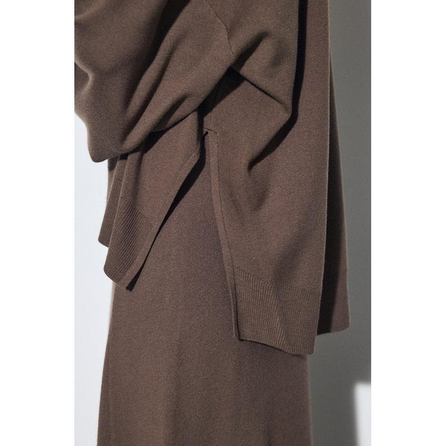 落ち感とストレッチ性の高いレーヨンポリエステルの糸を総針編みにすることで、カットソー感覚で着用いただける編地に仕上げています。