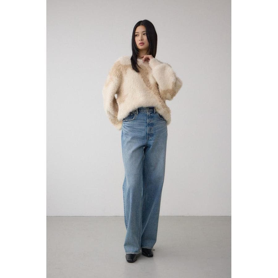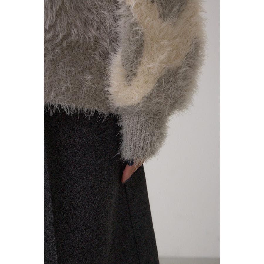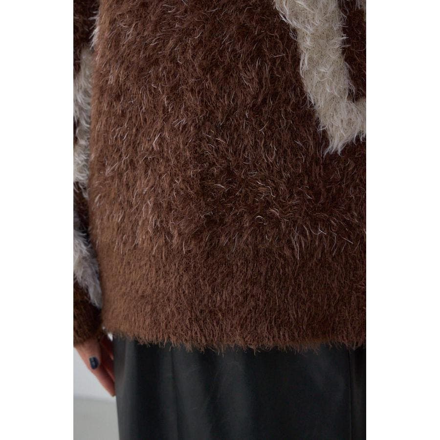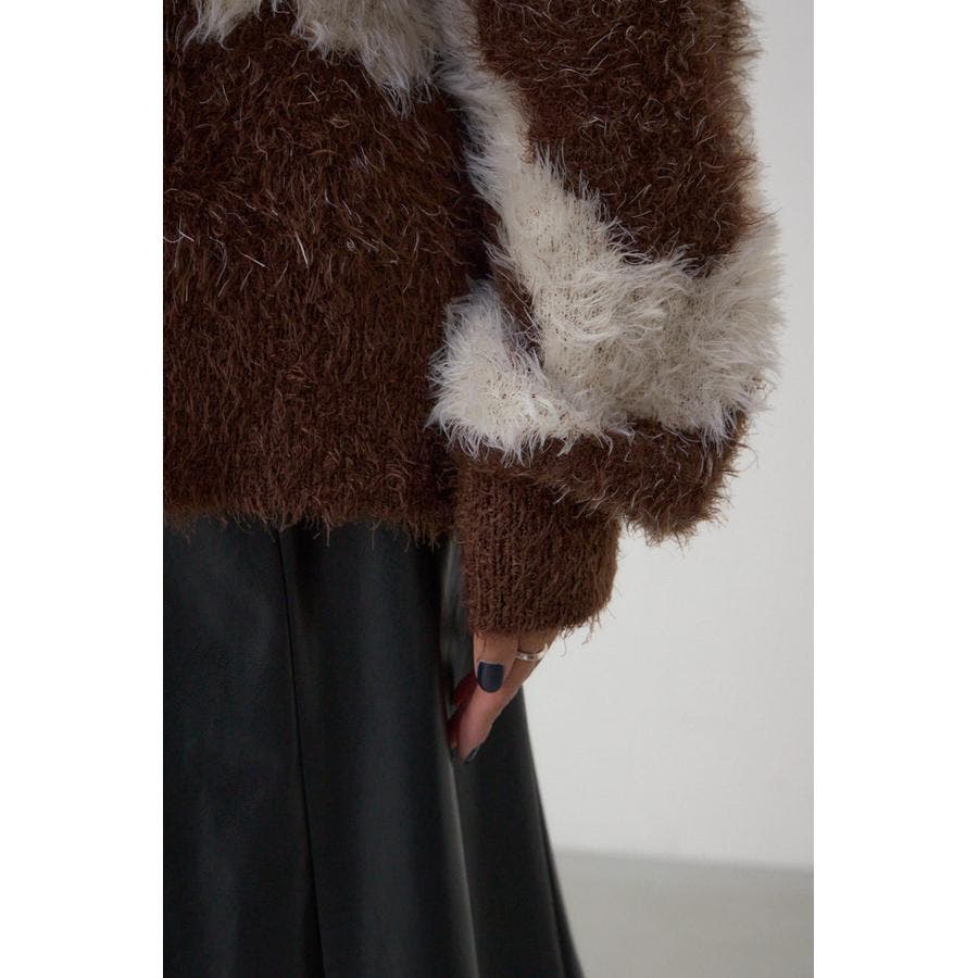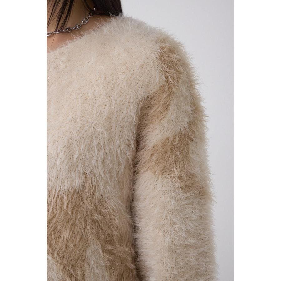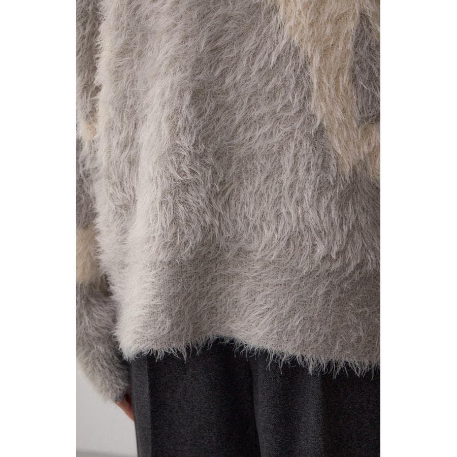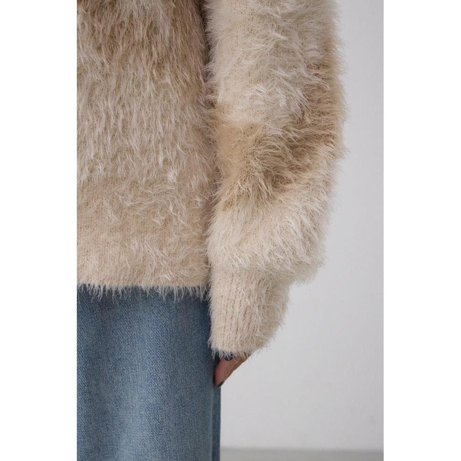 毛足の長いシャギー糸を使用し、ふっくらとしたボリューム感と軽やかな着心地のニットです。