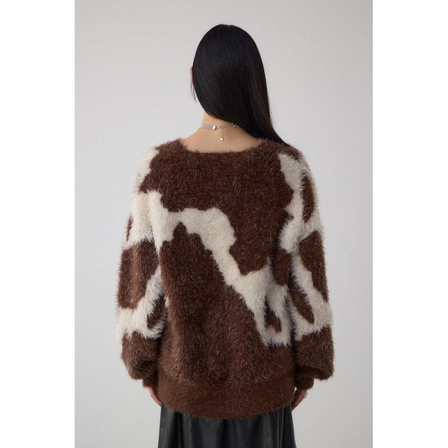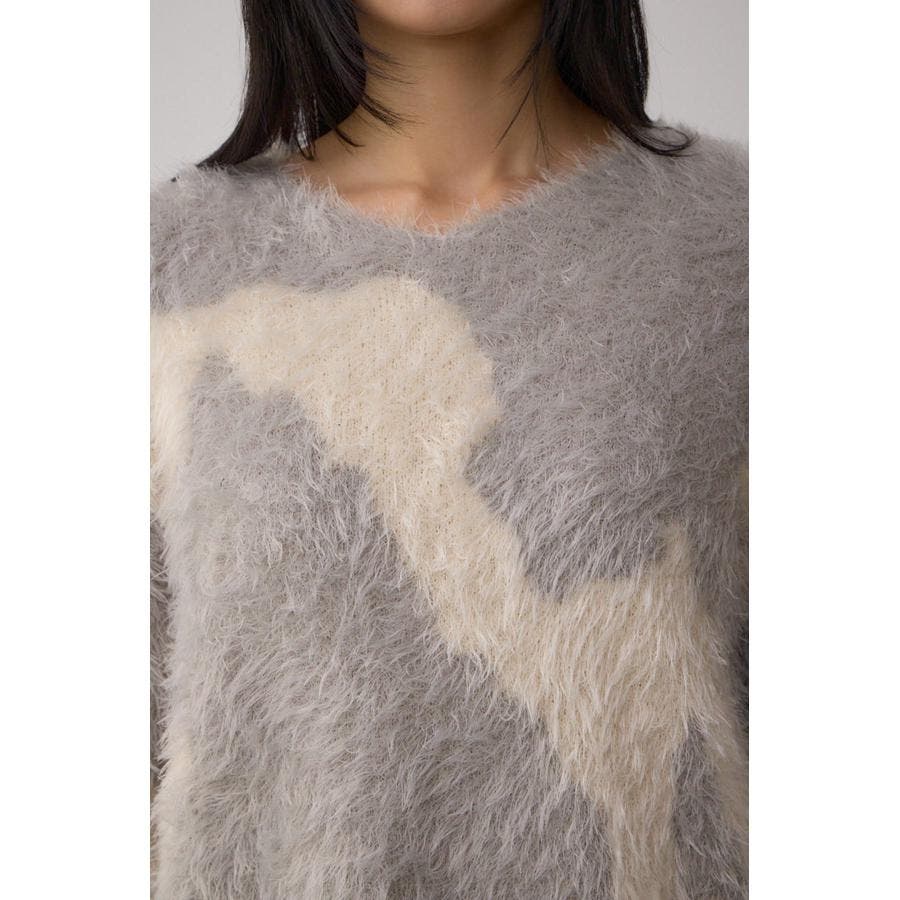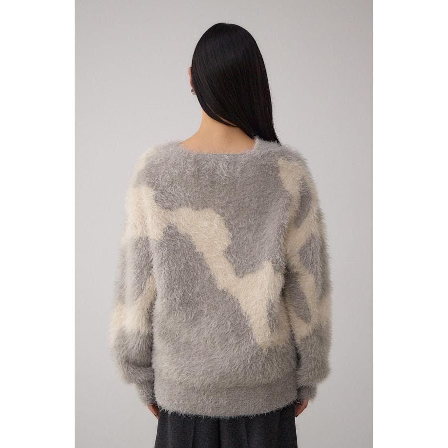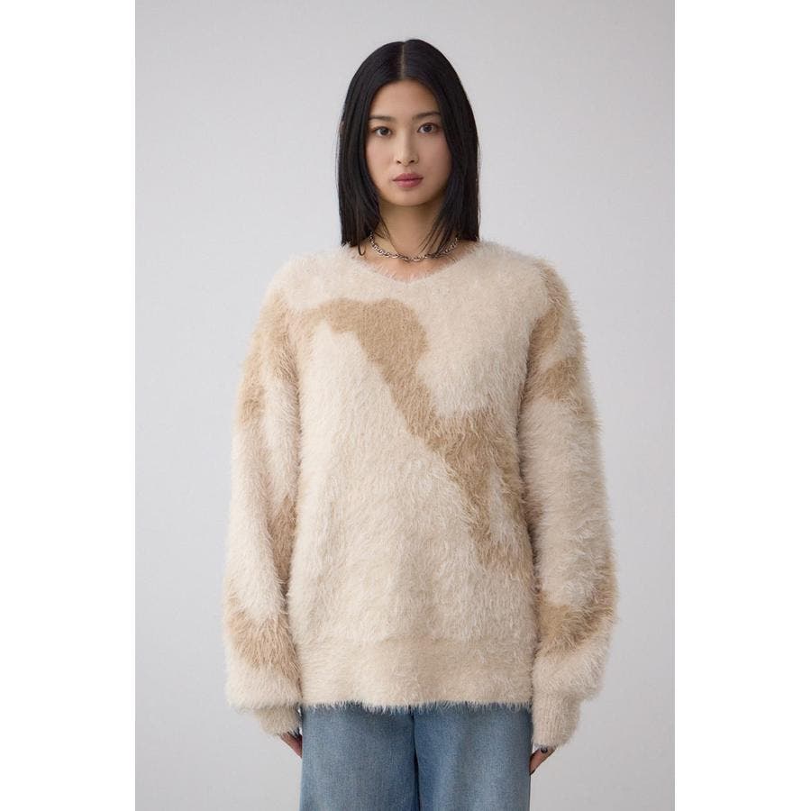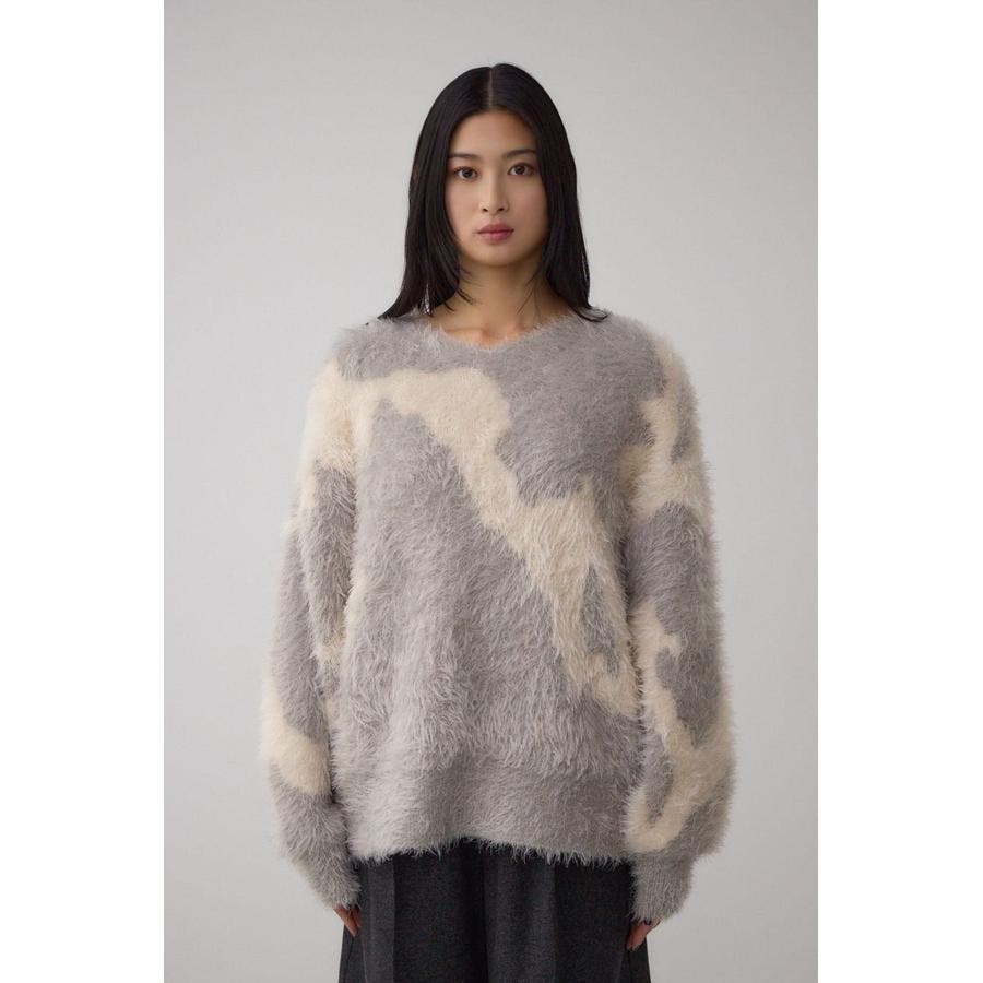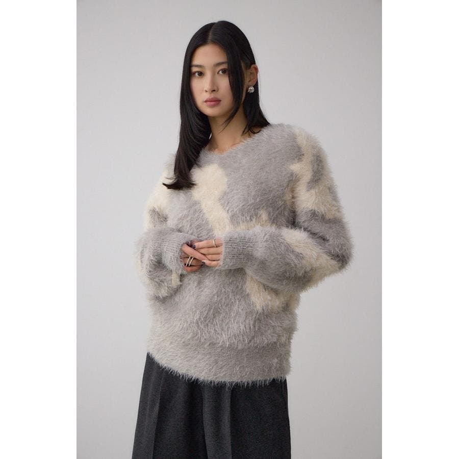 存在感のあるシャギー素材でニュアンス柄を表現したデザインが魅力の、シーズンムード高まるニットプルオーバー。