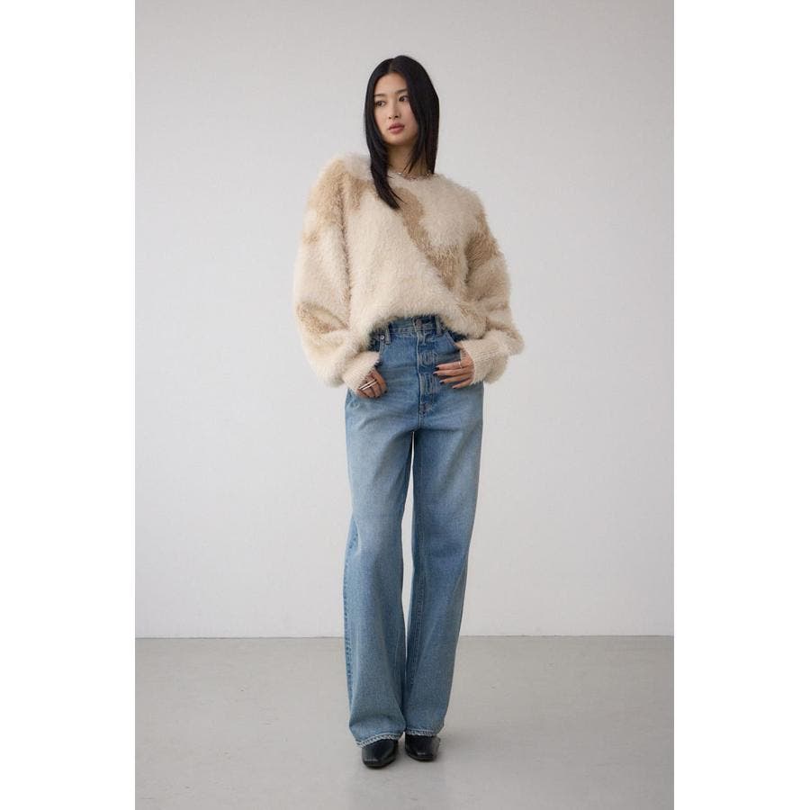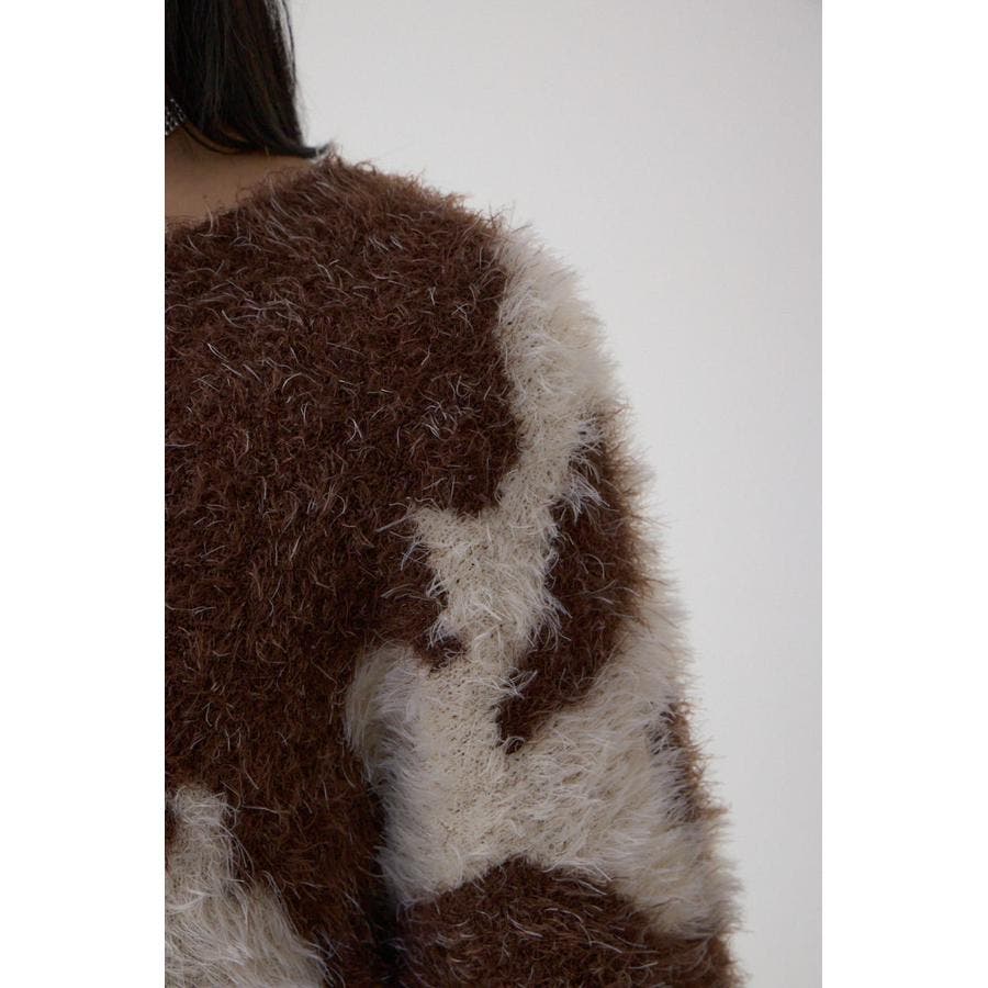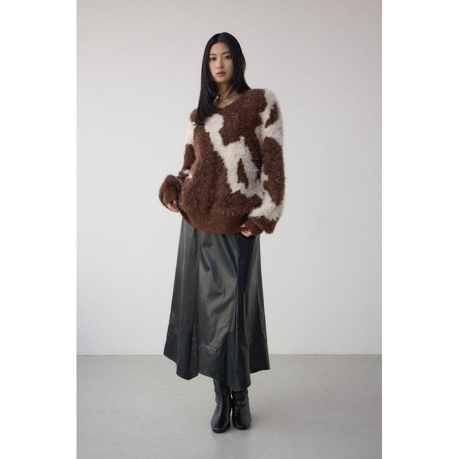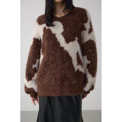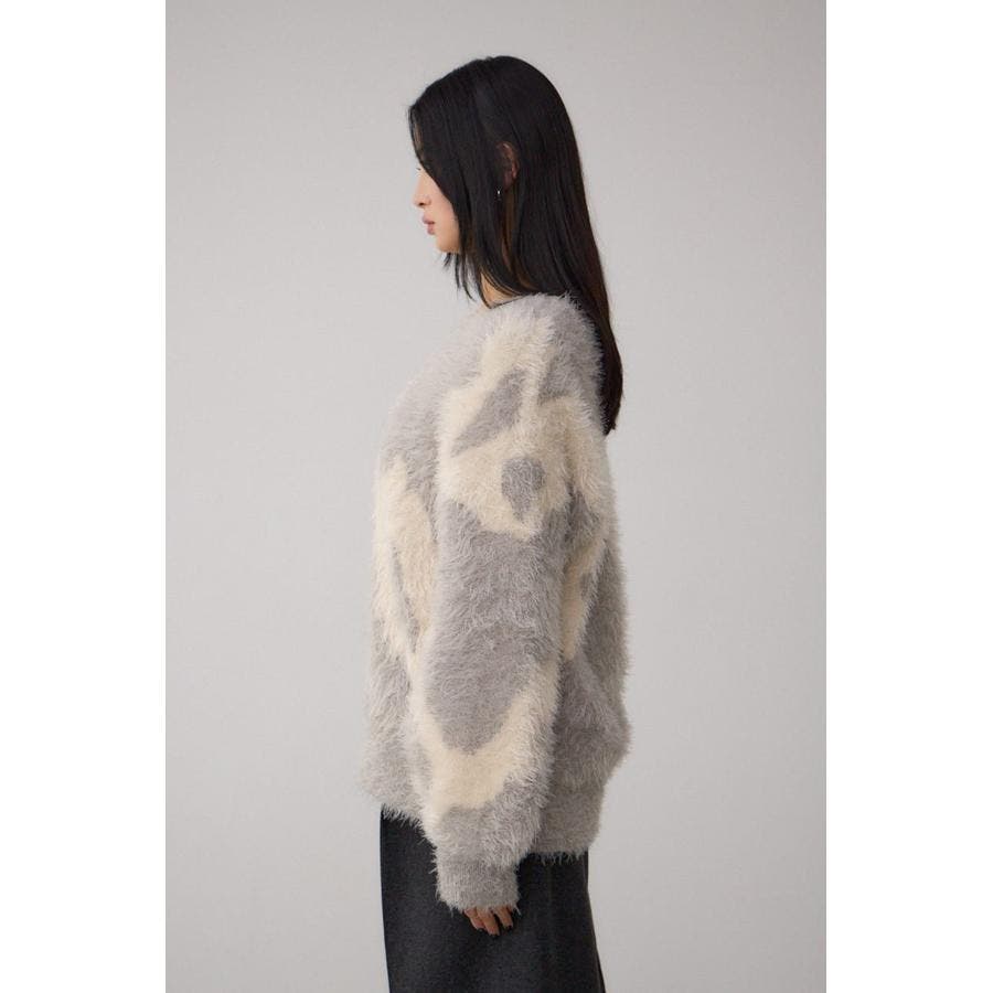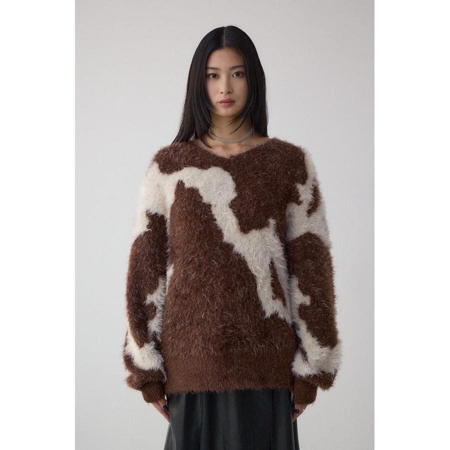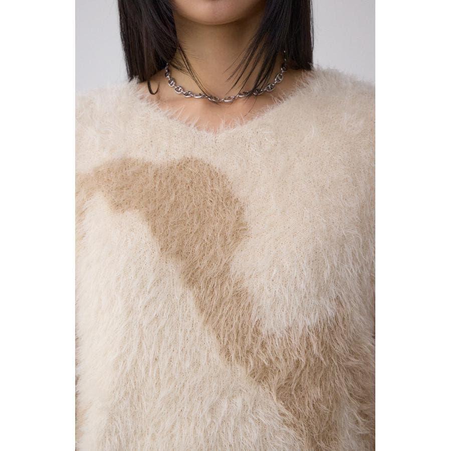 存在感のあるシャギー素材でニュアンス柄を表現したデザインが魅力の、シーズンムード高まるニットプルオーバー。