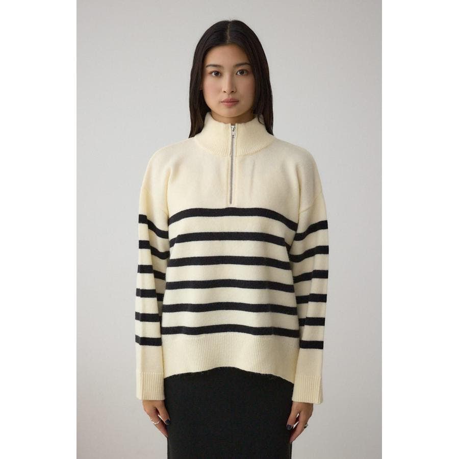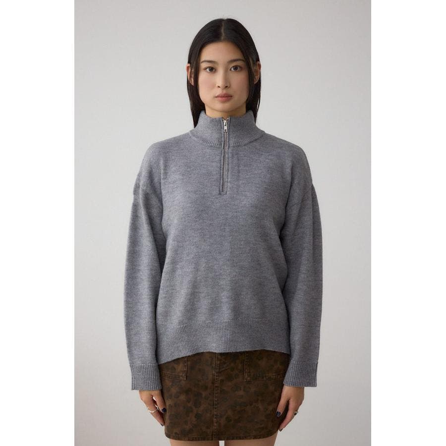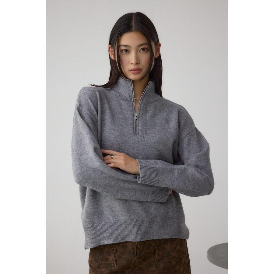 ハーフジップデザインが目をひく、抜け感のあるニットプルオーバー。