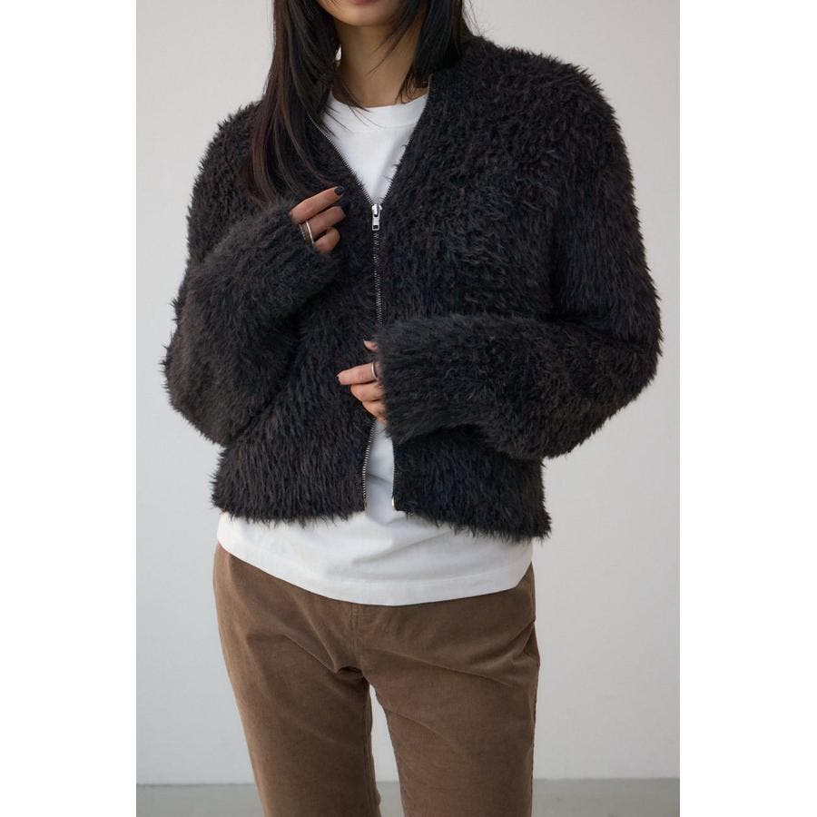 ふんわりとしたシャギー素材とWジップ仕様が魅力の、抜け感たっぷりなニットカーディガン。