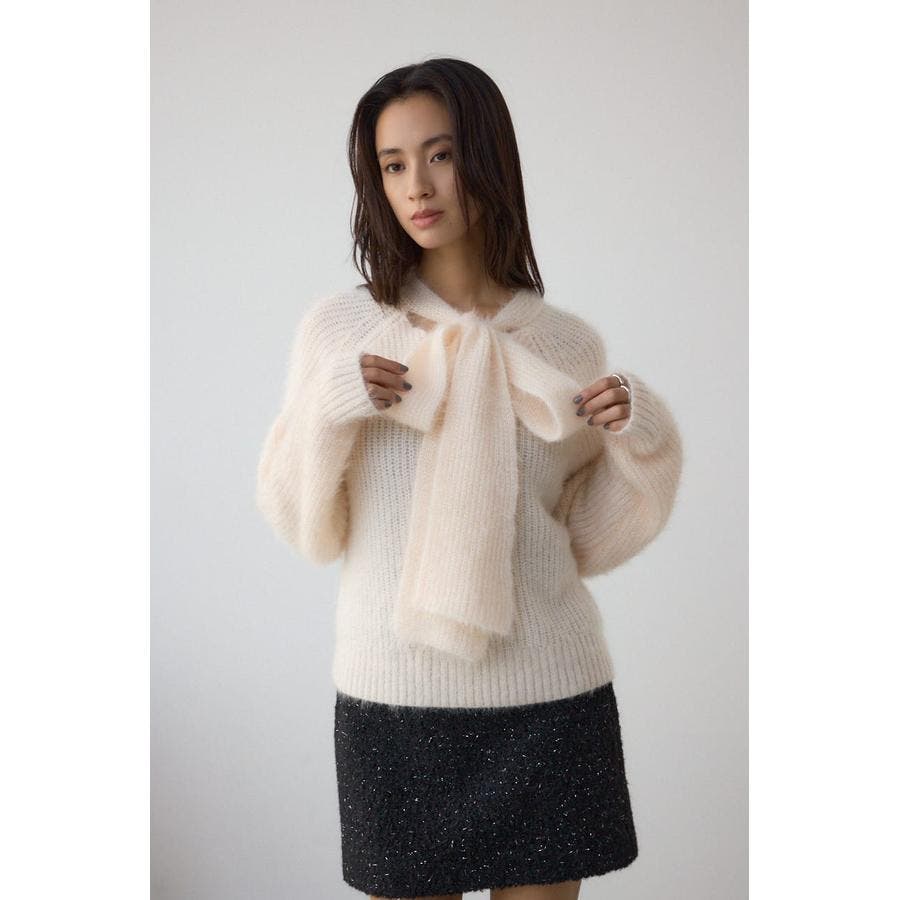 トレンドのリボンタイデザインを取り入れたニットプルオーバー。