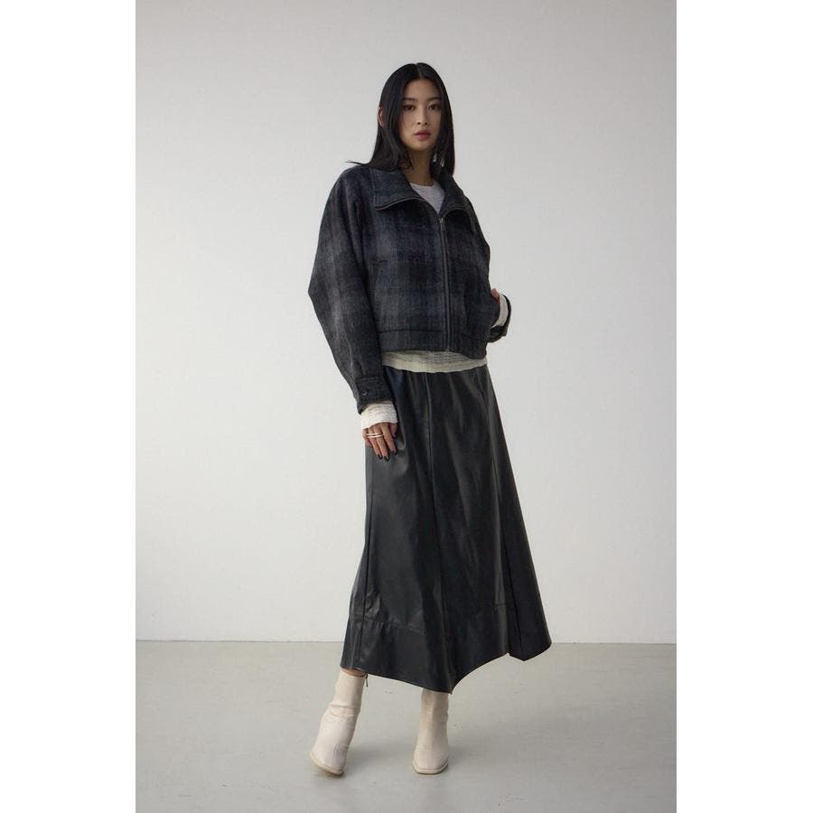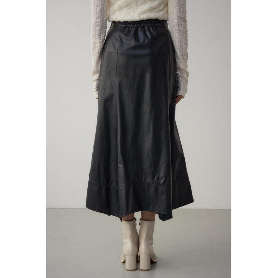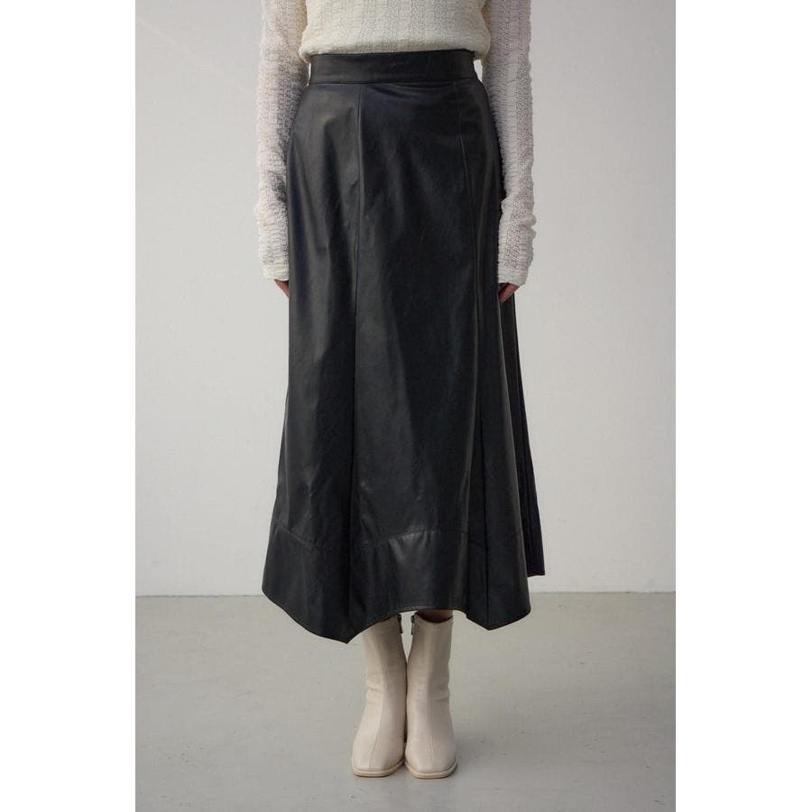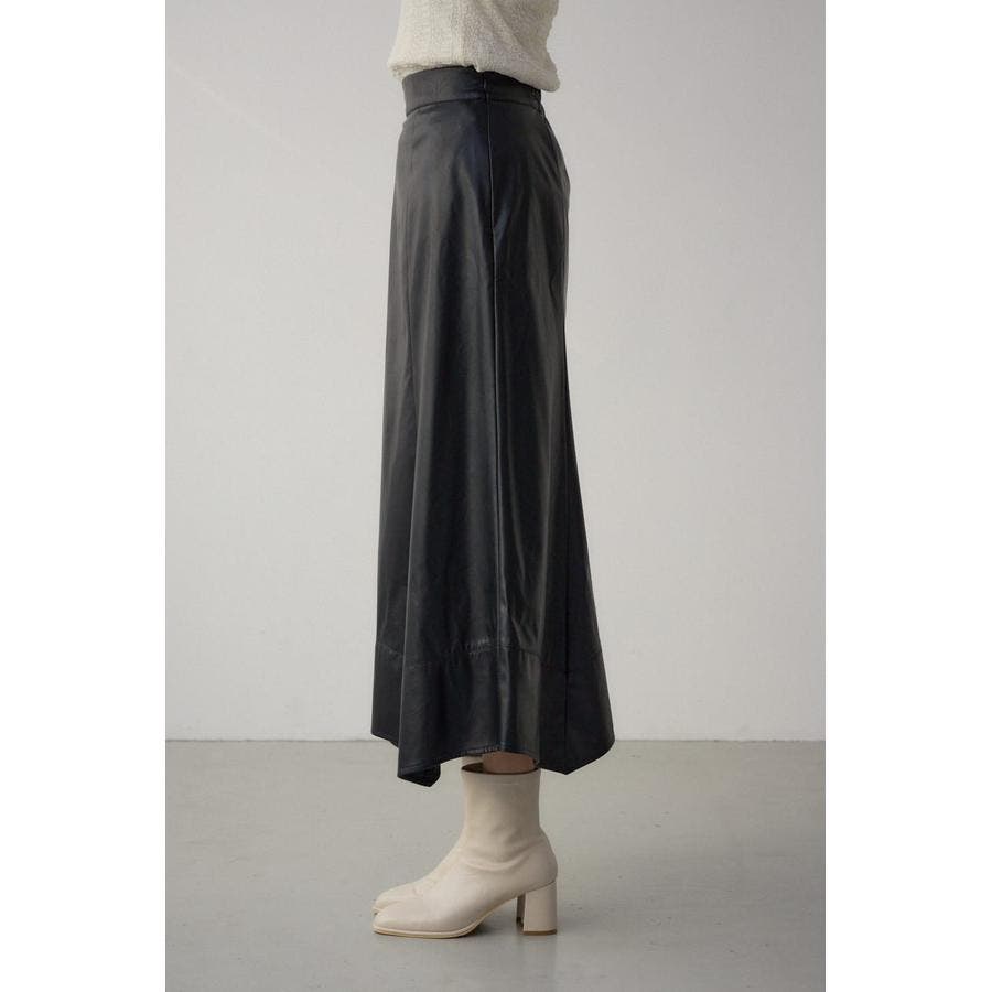 マットなフェイクレザーと揺れ感のあるハンカチーフヘムが、辛口とフェミニンを絶妙に両立するスカート。