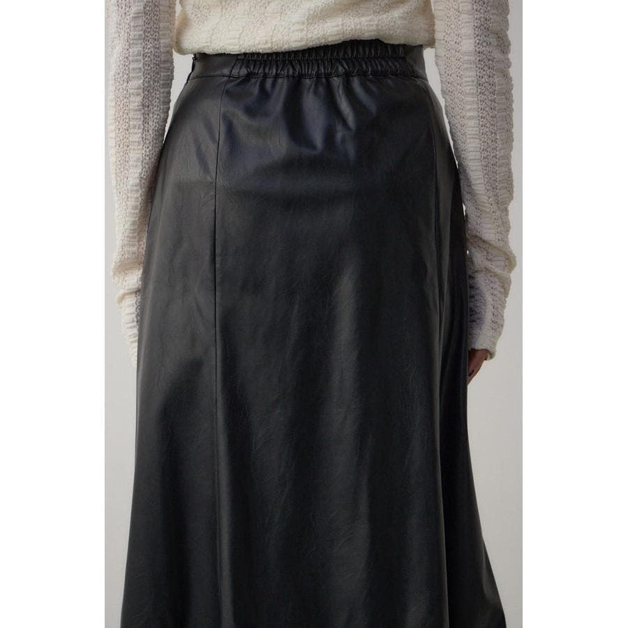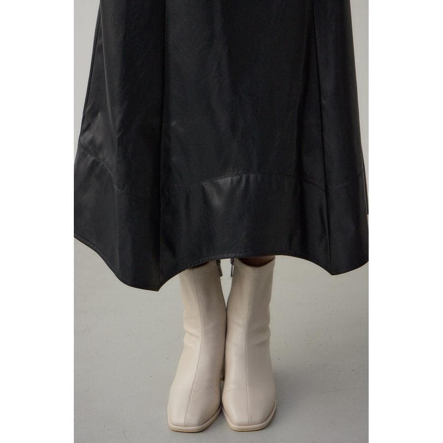 しなやかなフェイクレザーが自然な落ち感を生み、歩くたびに裾がふわりと波打つドラマティックな印象に。