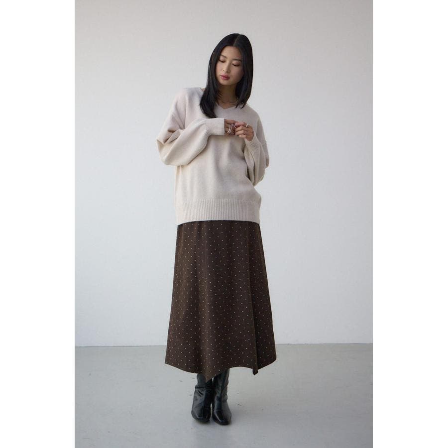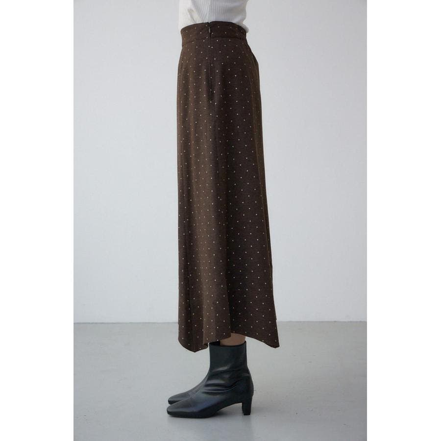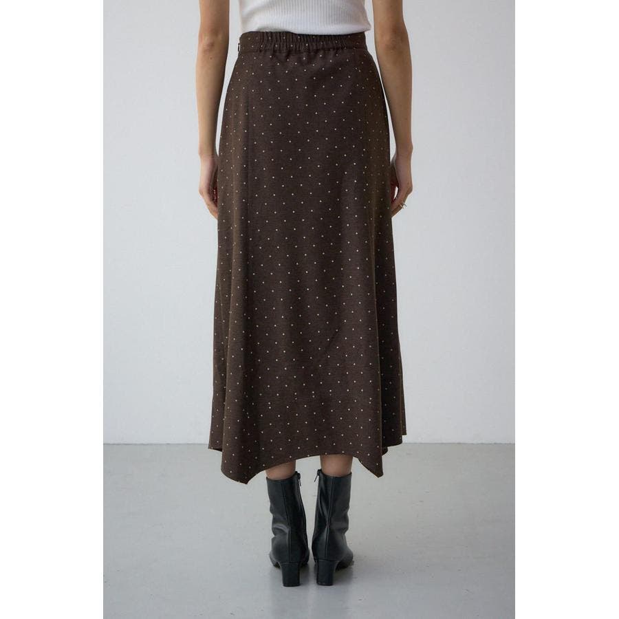細かなドット×揺れるハンカチーフヘムで、歩くほどに表情が出る上品なスカート。