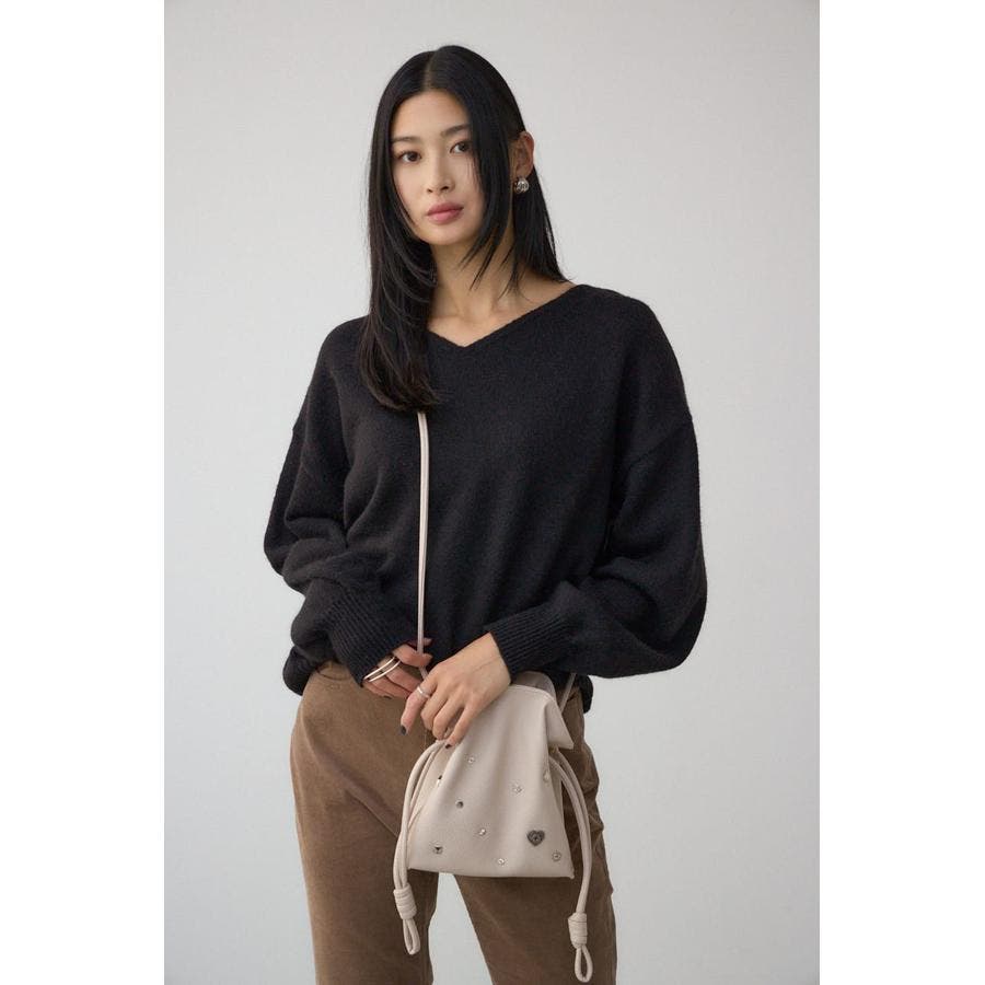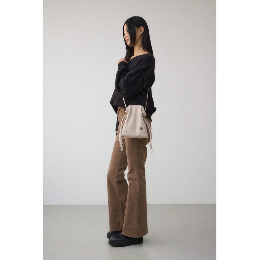 小ぶりながらもスタッズが光る、コーディネートのアクセントになる巾着ショルダーバッグ。