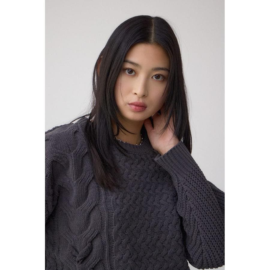 ■サイドレースアップケーブルニット