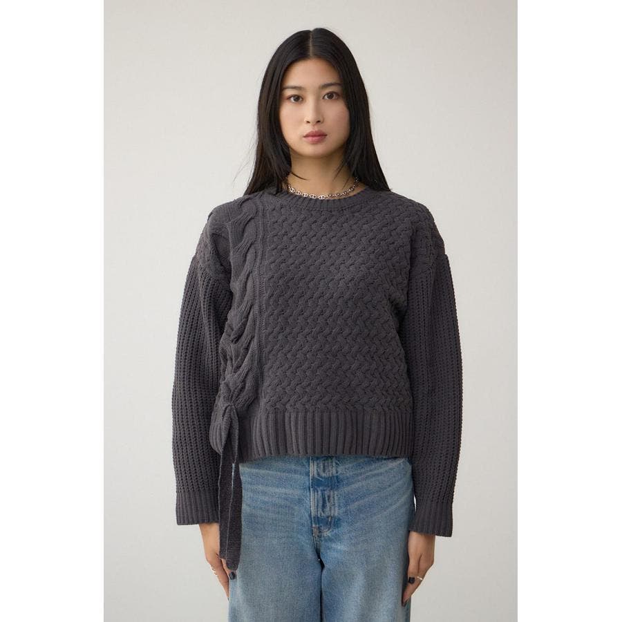 サイドレースアップケーブルニット