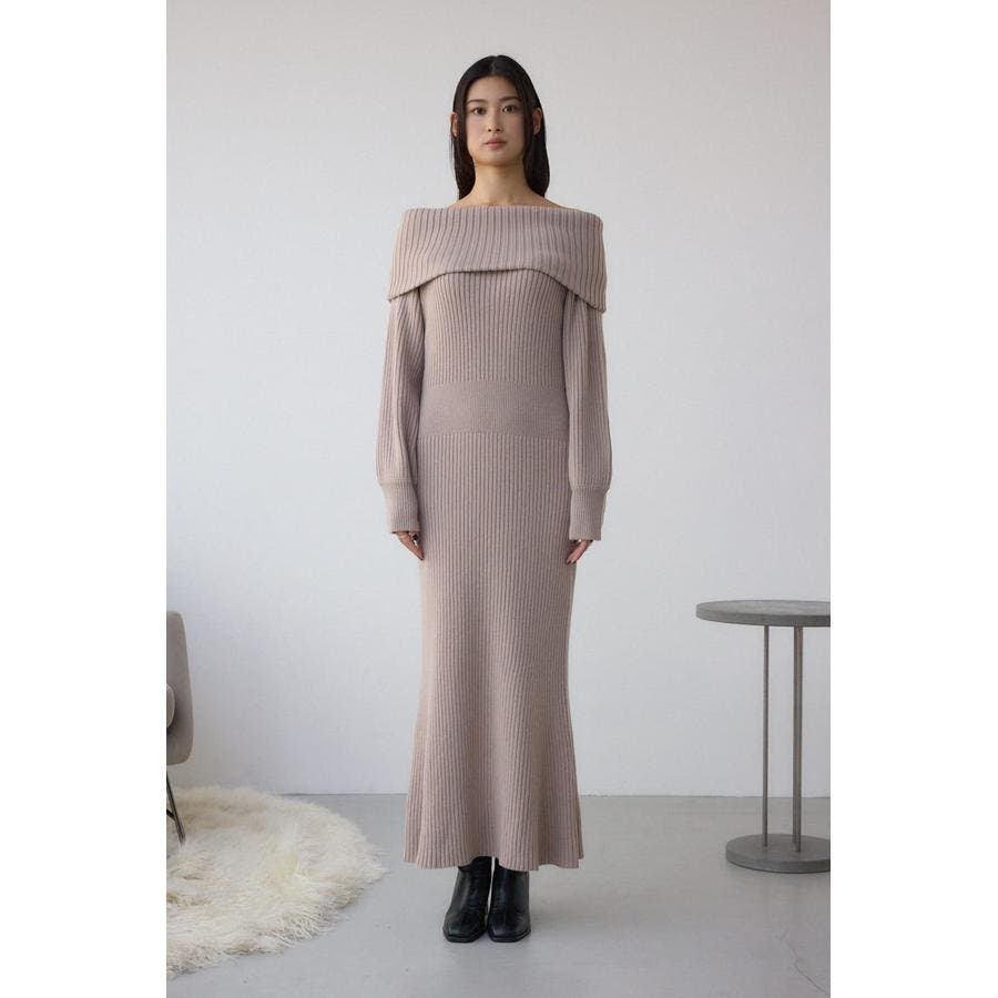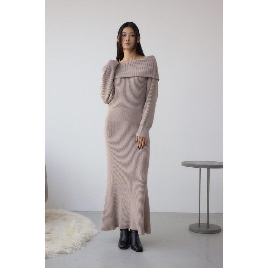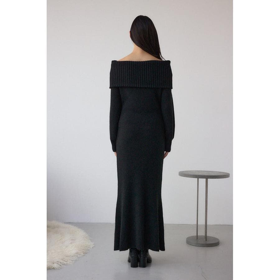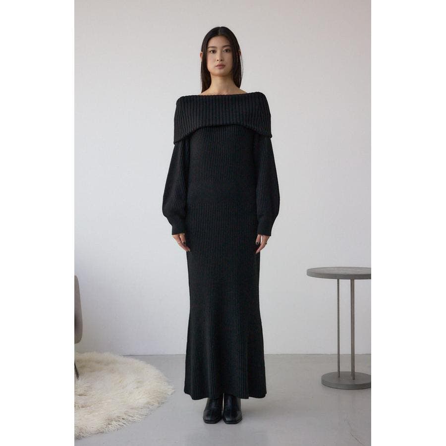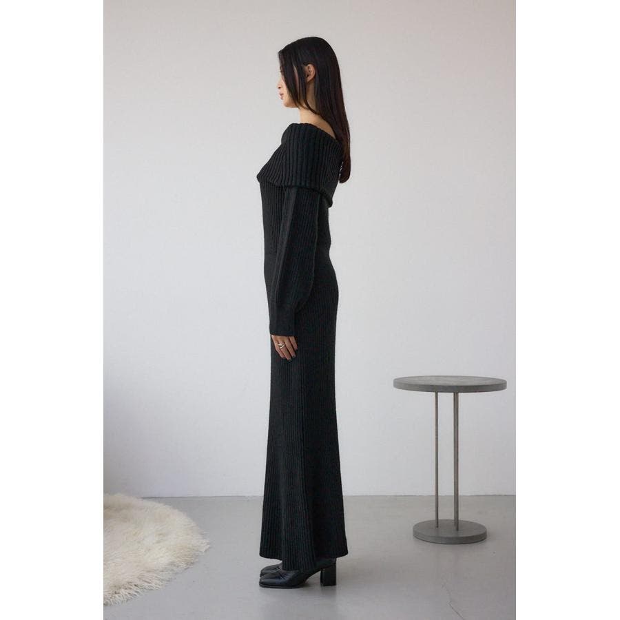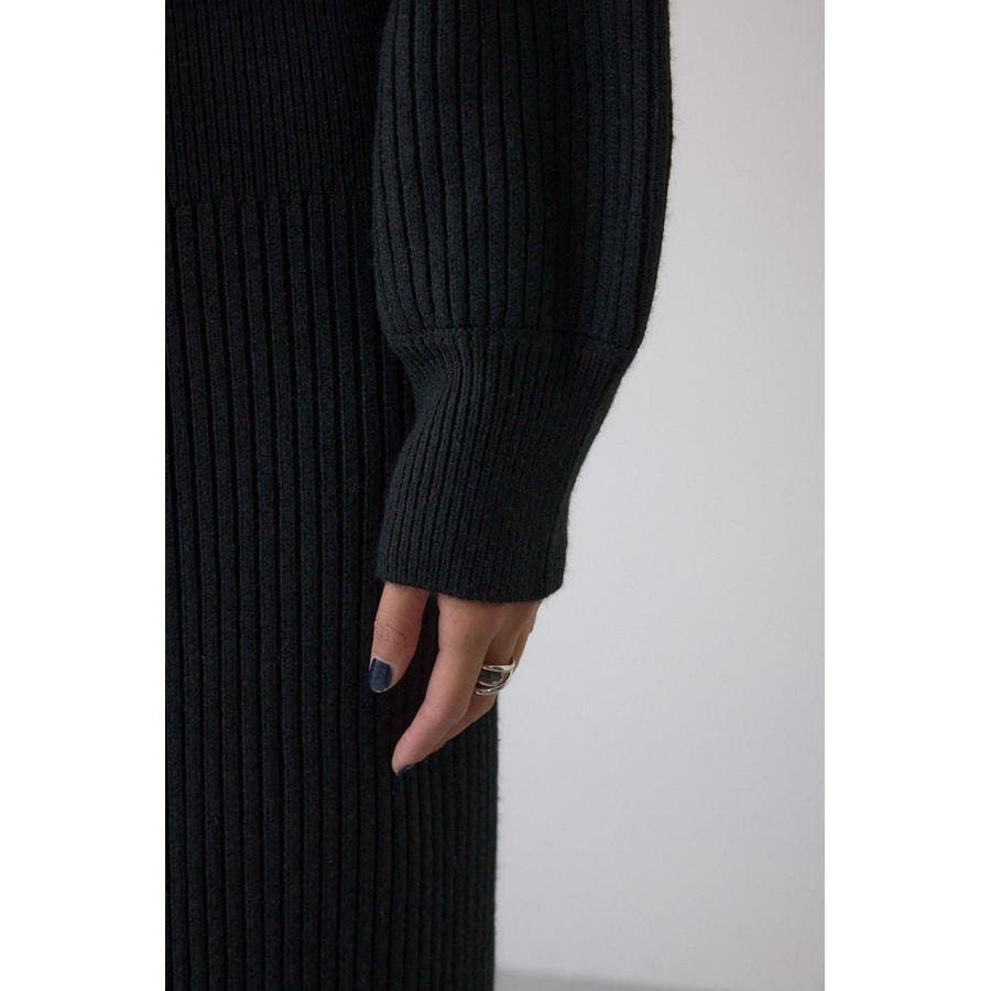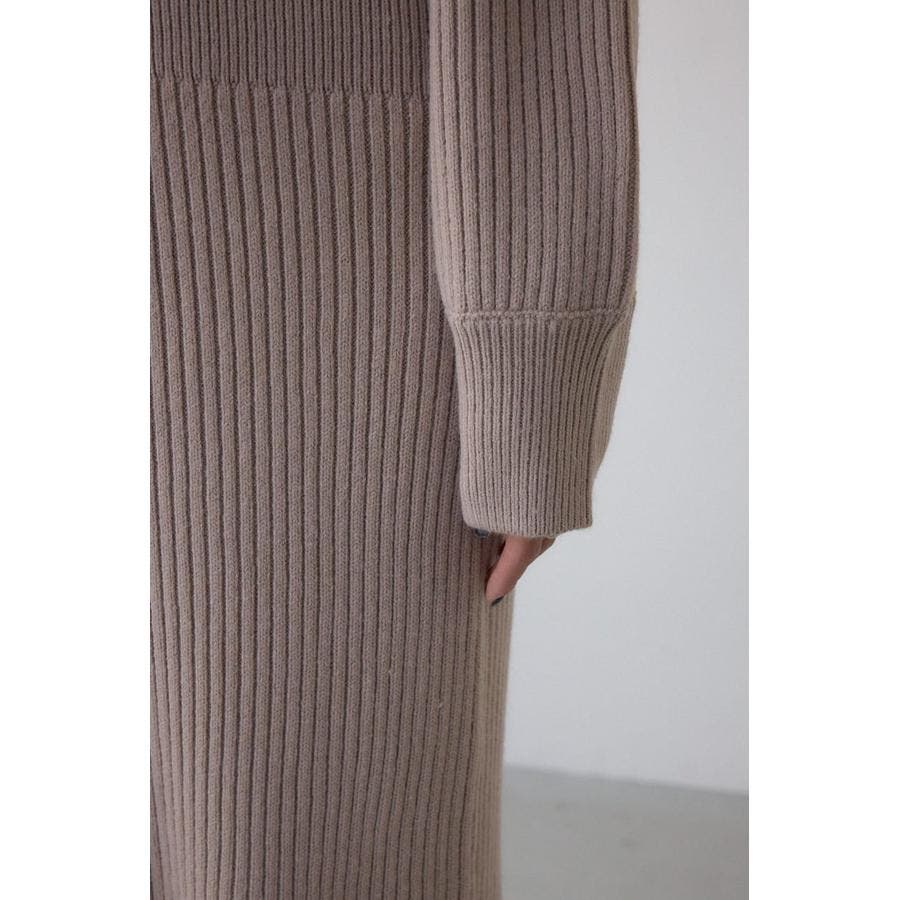 リブが縦ラインを強調し、身体のラインに沿いながらもエレガントな雰囲気を演出します。