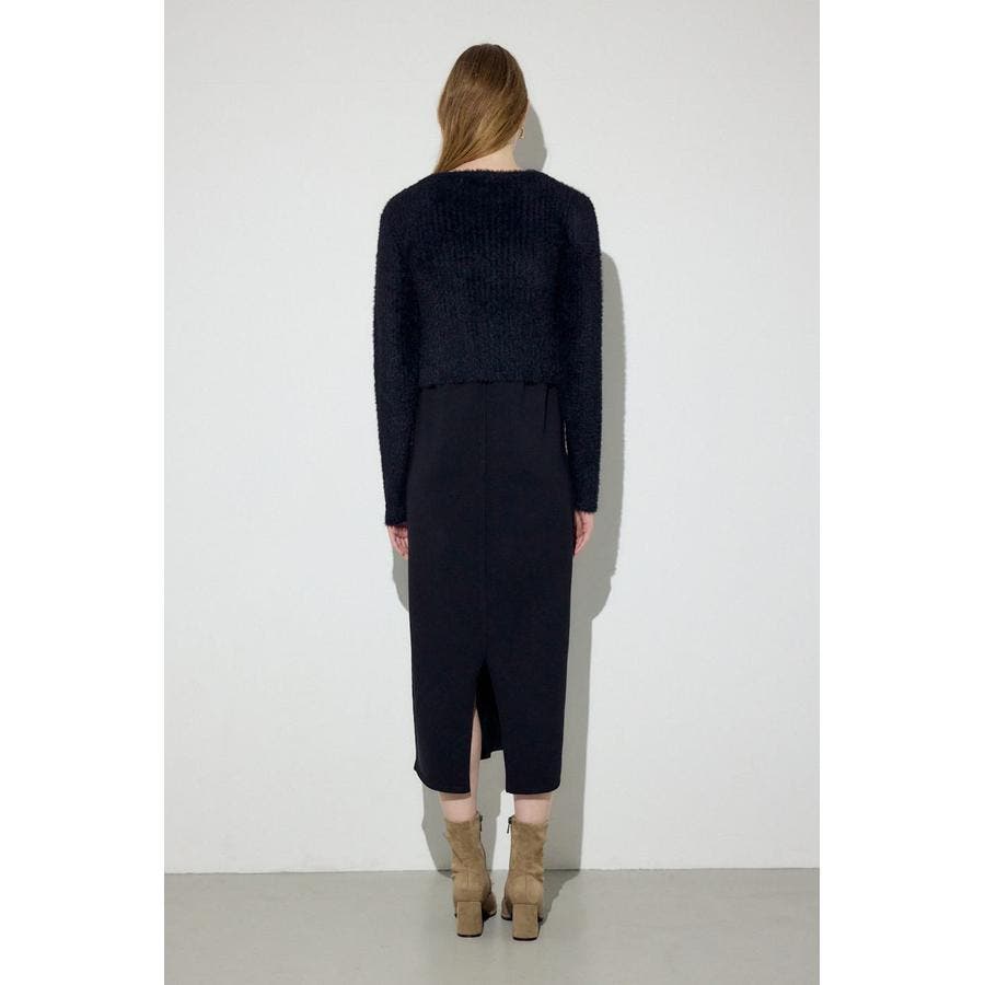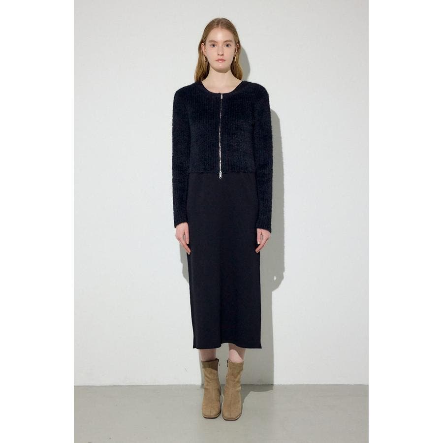 Wジップシャギーカーデセットニットワンピース