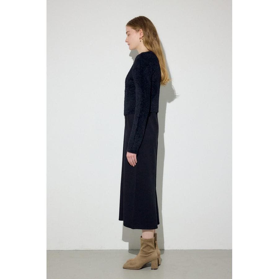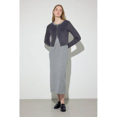 カーディガンには毛足のあるシャギー素材を使用し、ワンピースにはプレーティング編みによって適度な肉感を持たせた素材を採用しています。