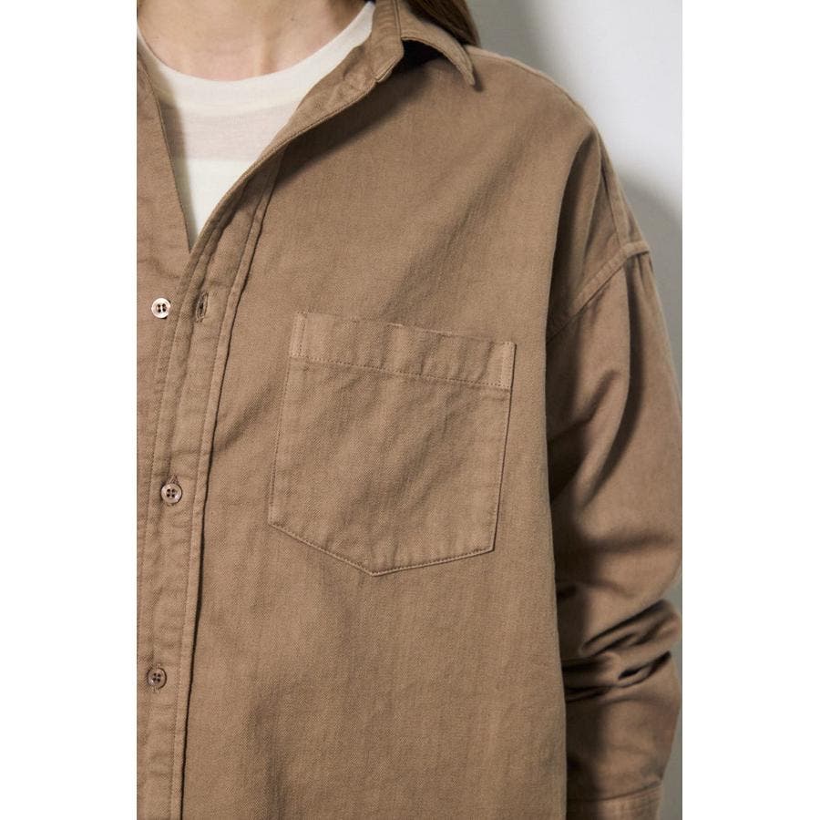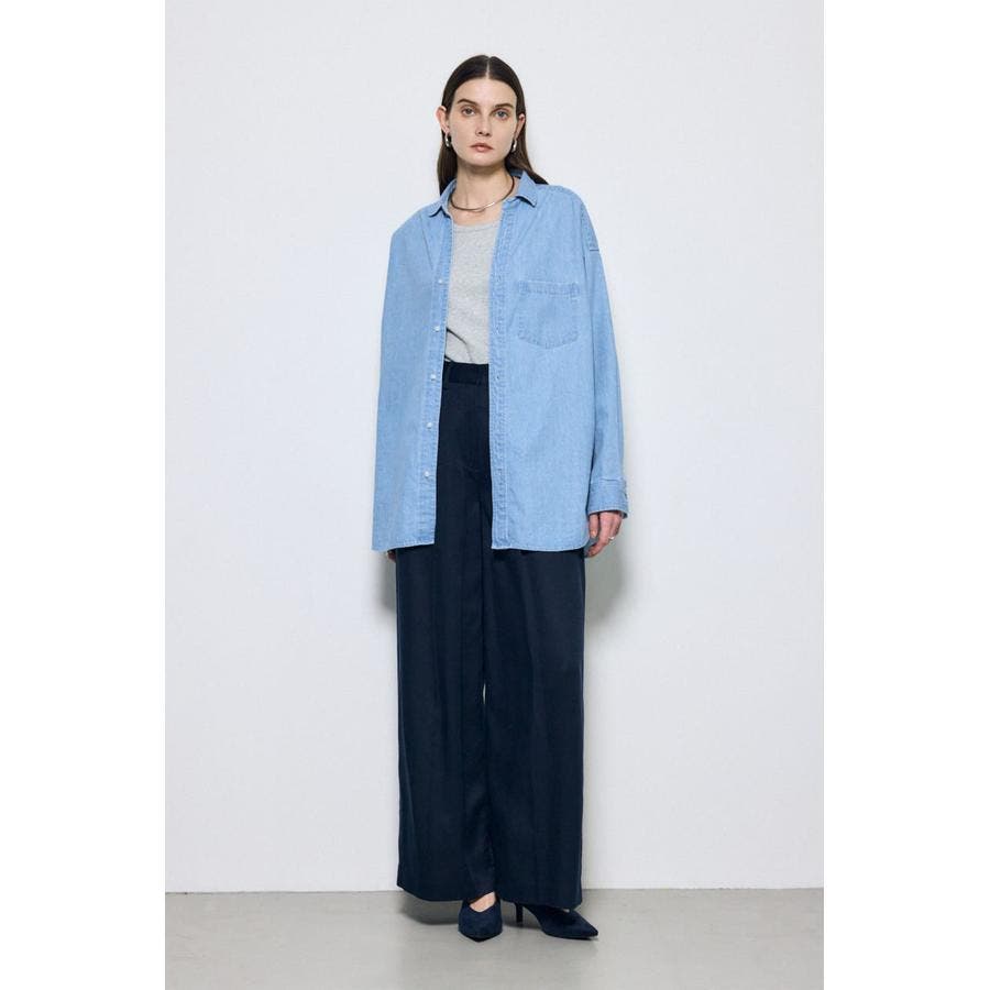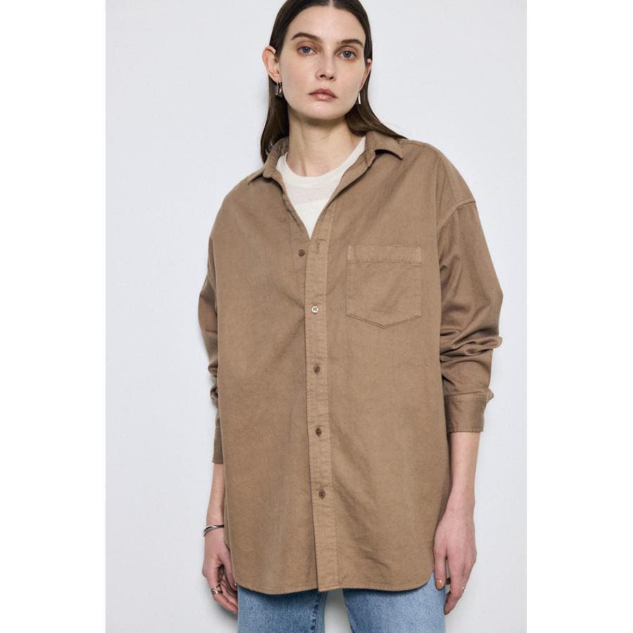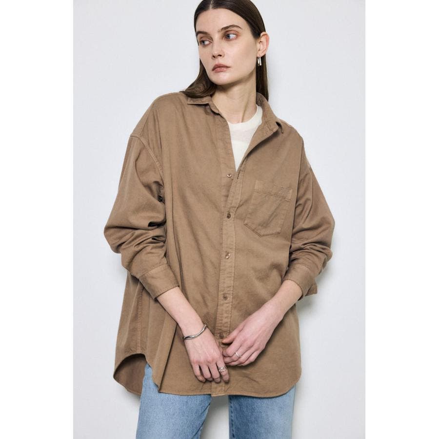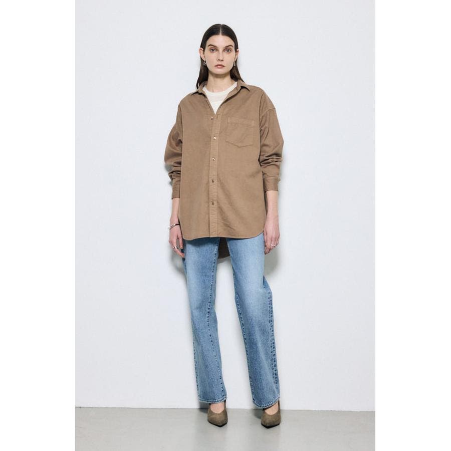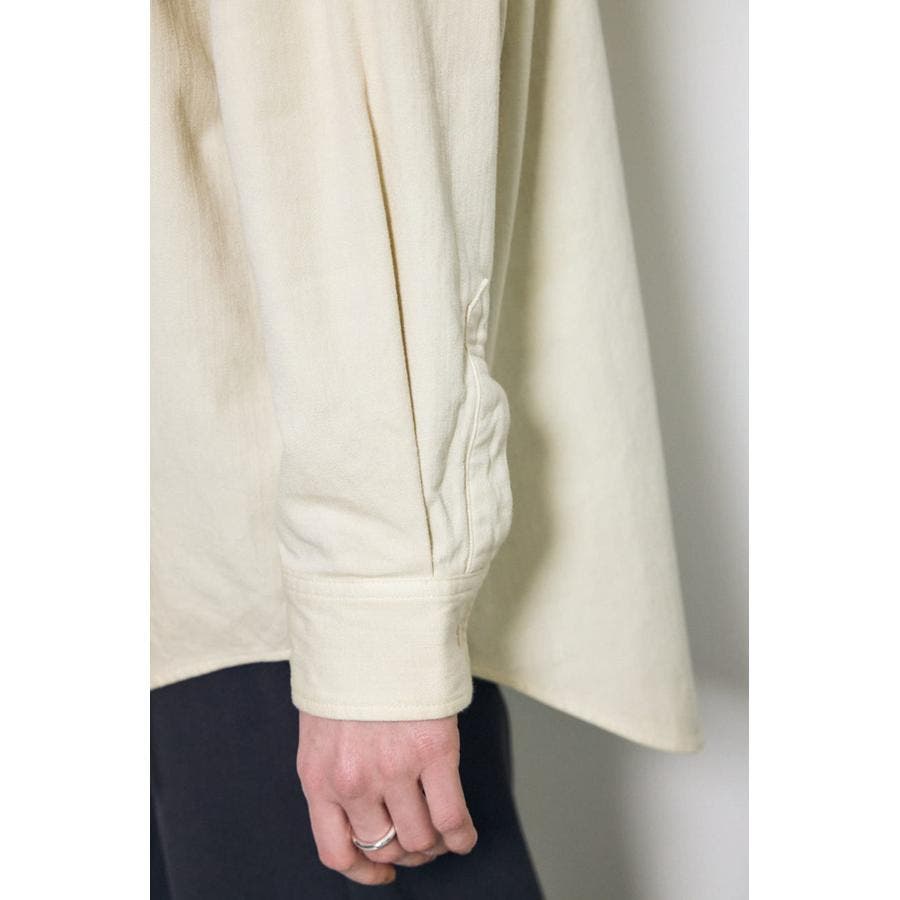 シンプルなレギュラーカラーで、大人の抜け感を醸し出す万能シャツ。