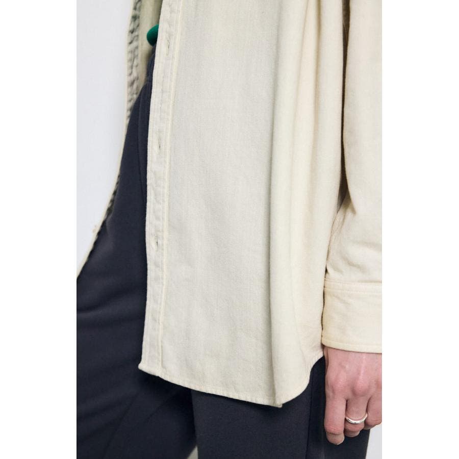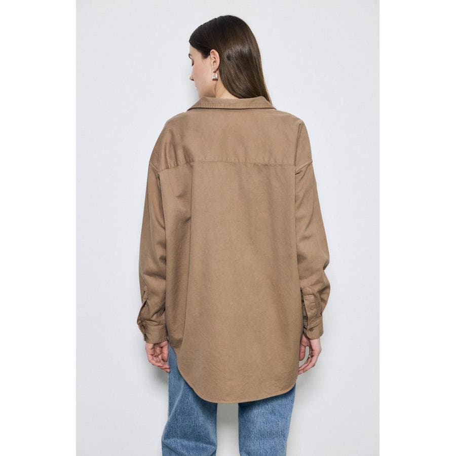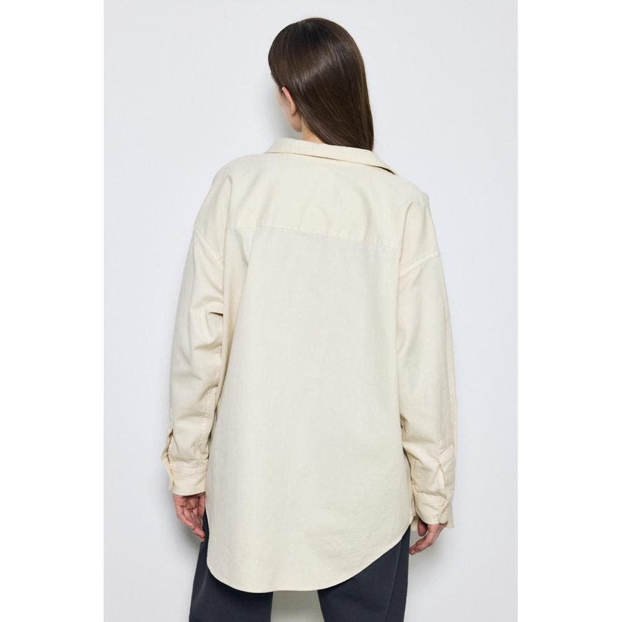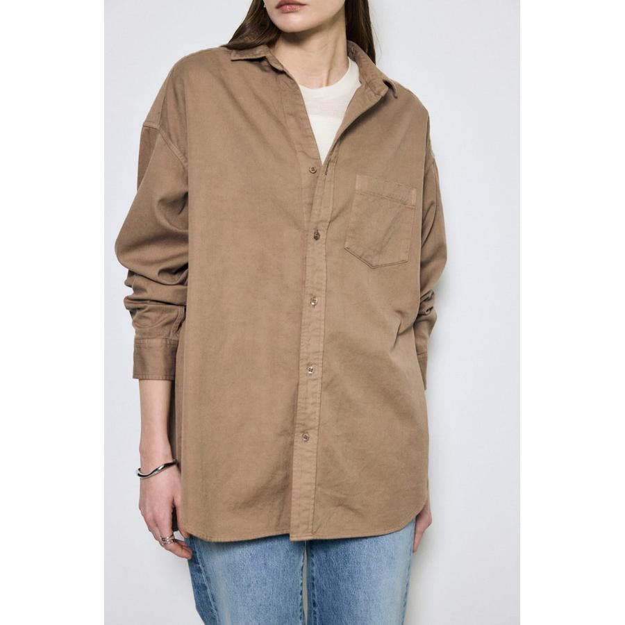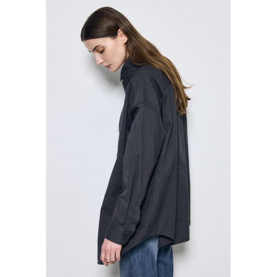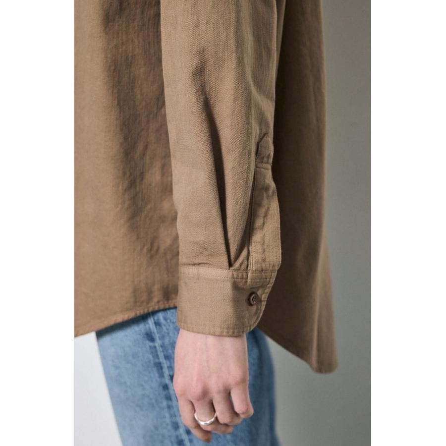 シンプルなレギュラーカラーで、大人の抜け感を醸し出す万能シャツ。