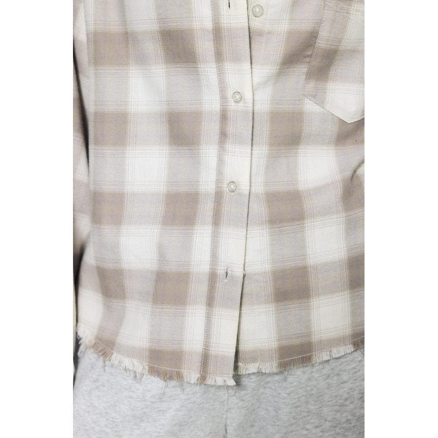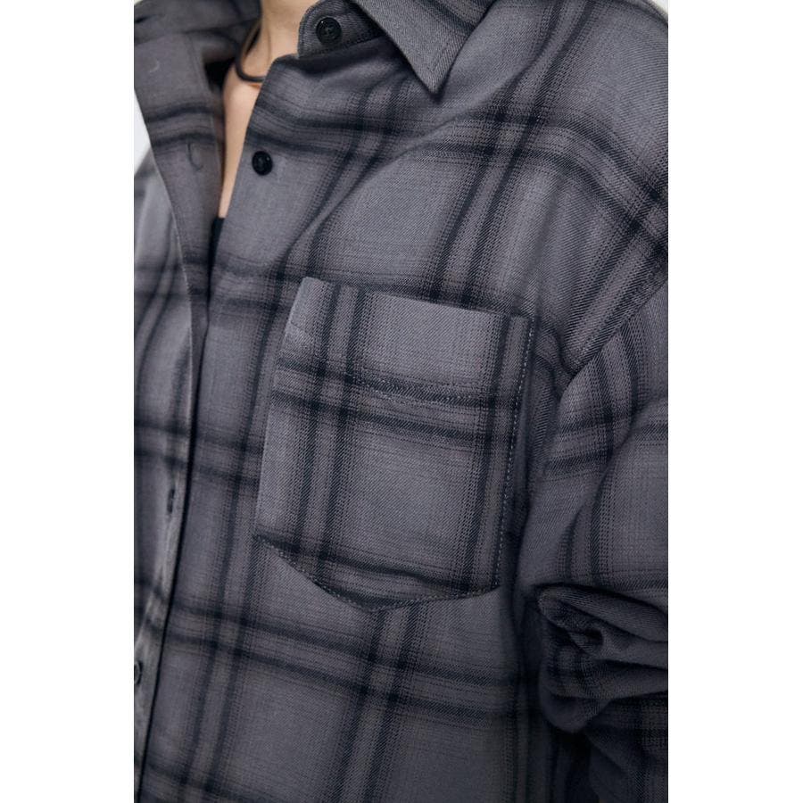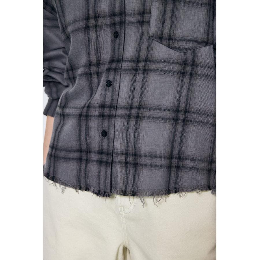 コットン48%・レーヨン52%の先染めチェック素材を使用したシャツ。