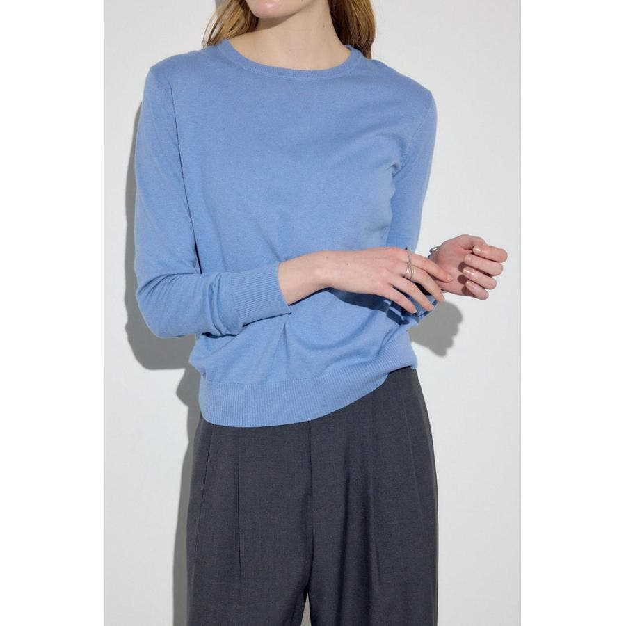 カシミヤ混素材ならではの上品な風合いが魅力の、シンプルで洗練された長袖トップス。
