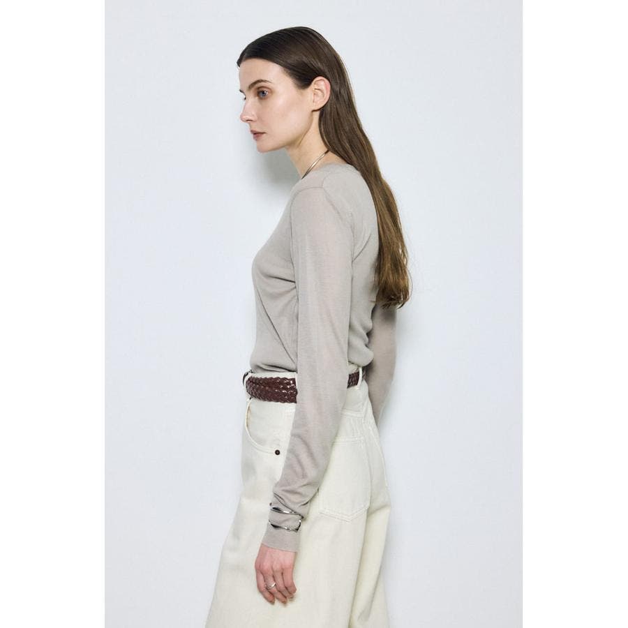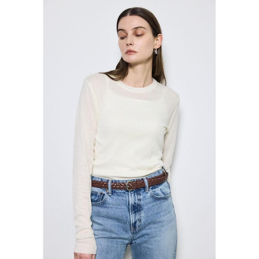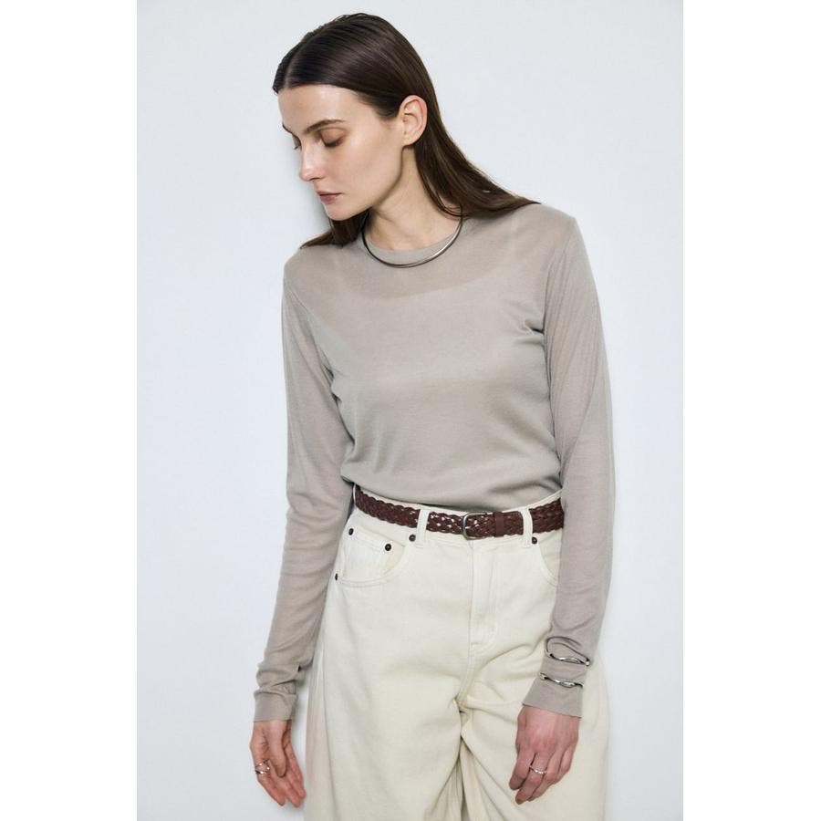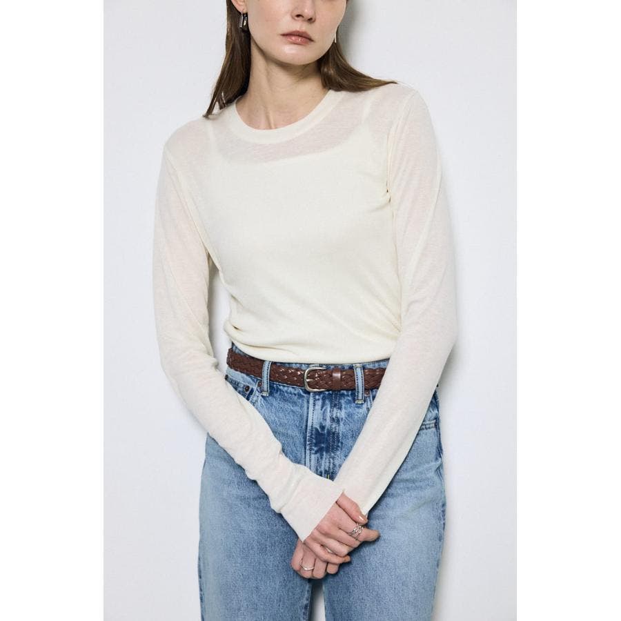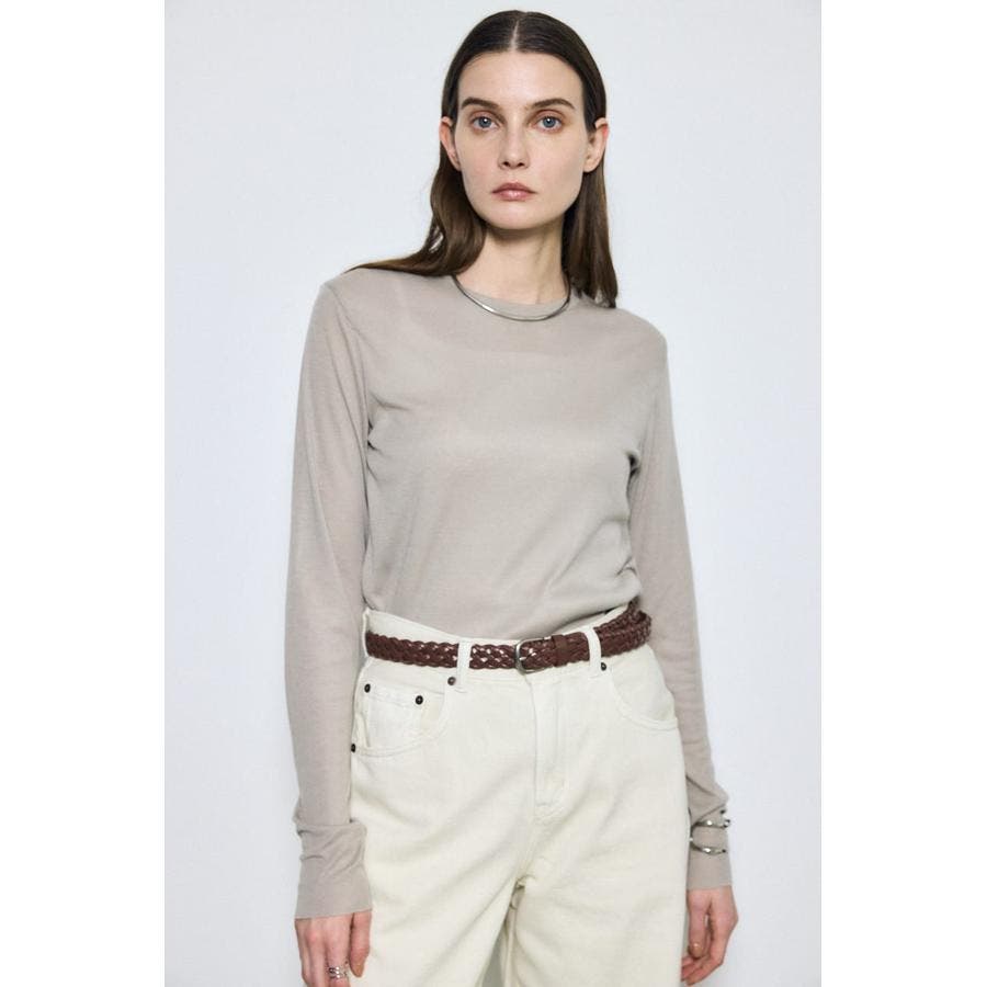 ベーシックなクルーネック仕様で、レイヤードしやすいデザイン。
