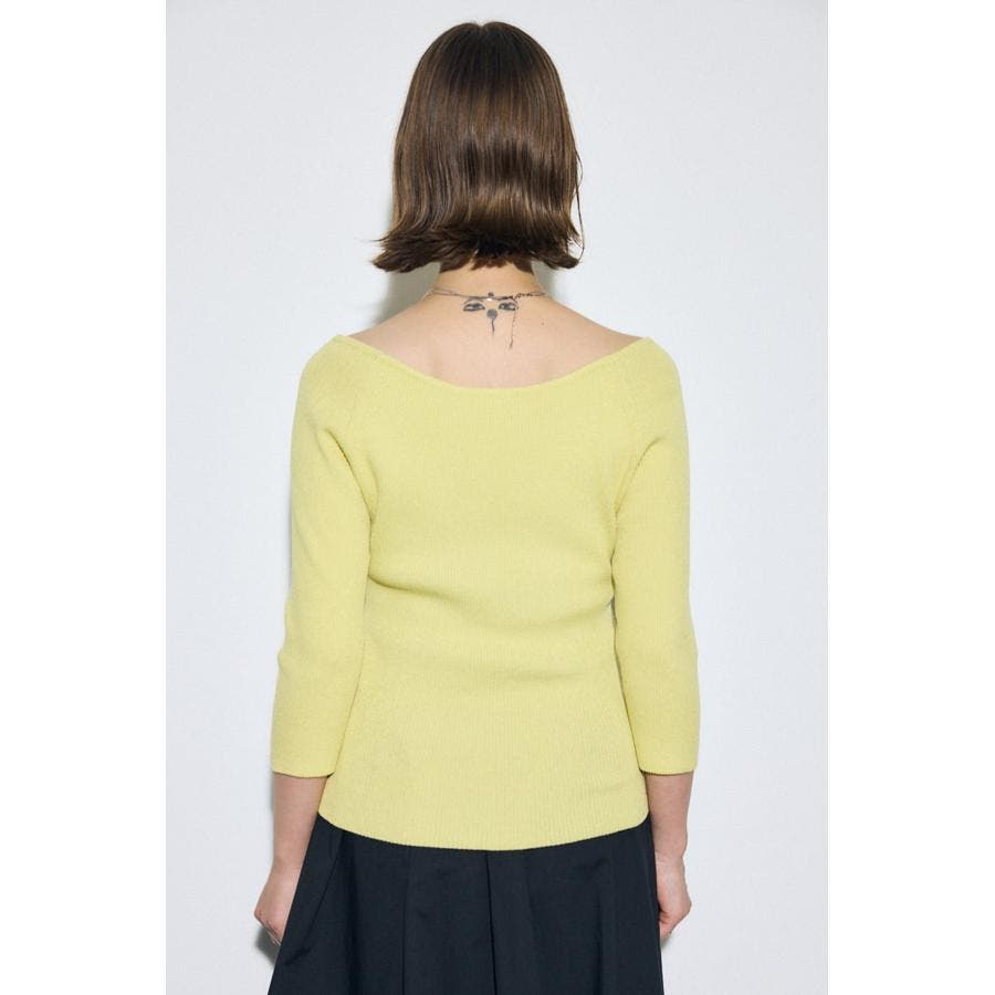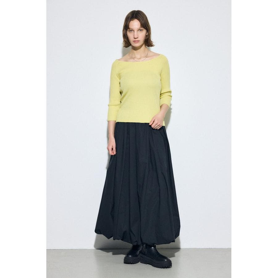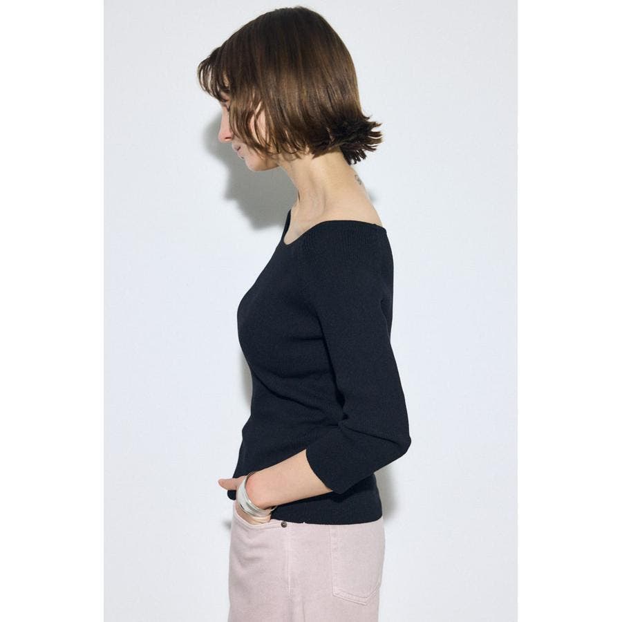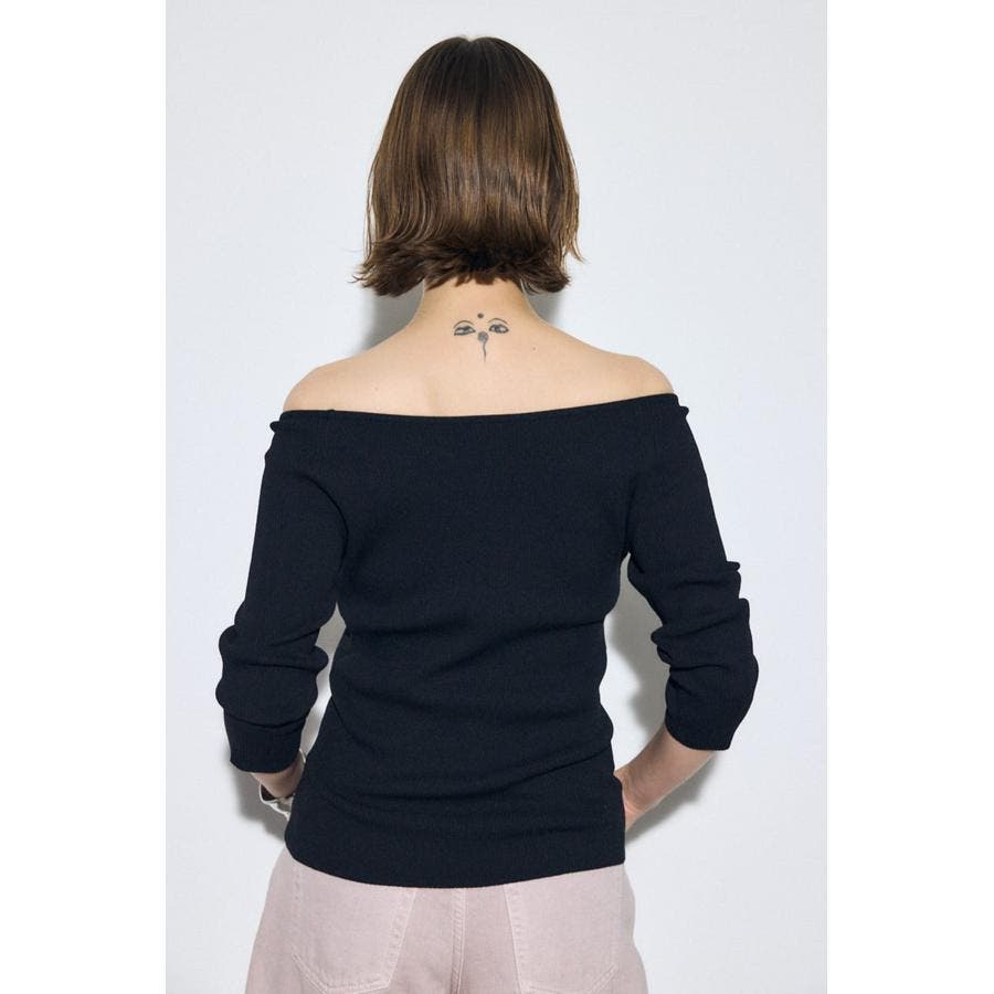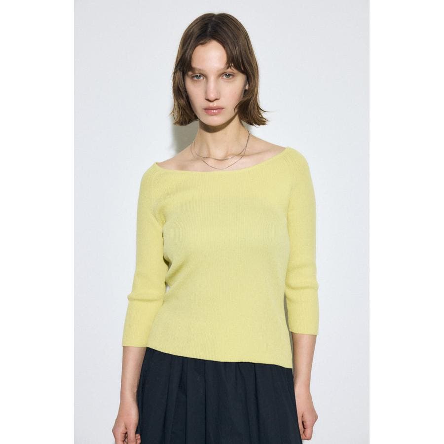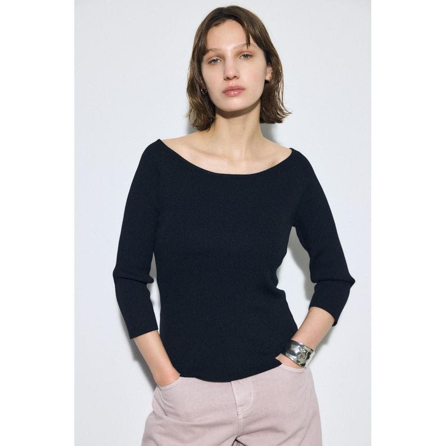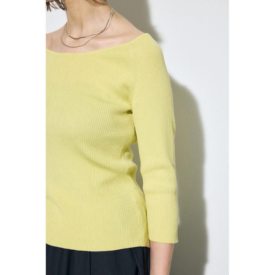 デコルテをきれいに見せてくれる、オフショルダーニットトップス。