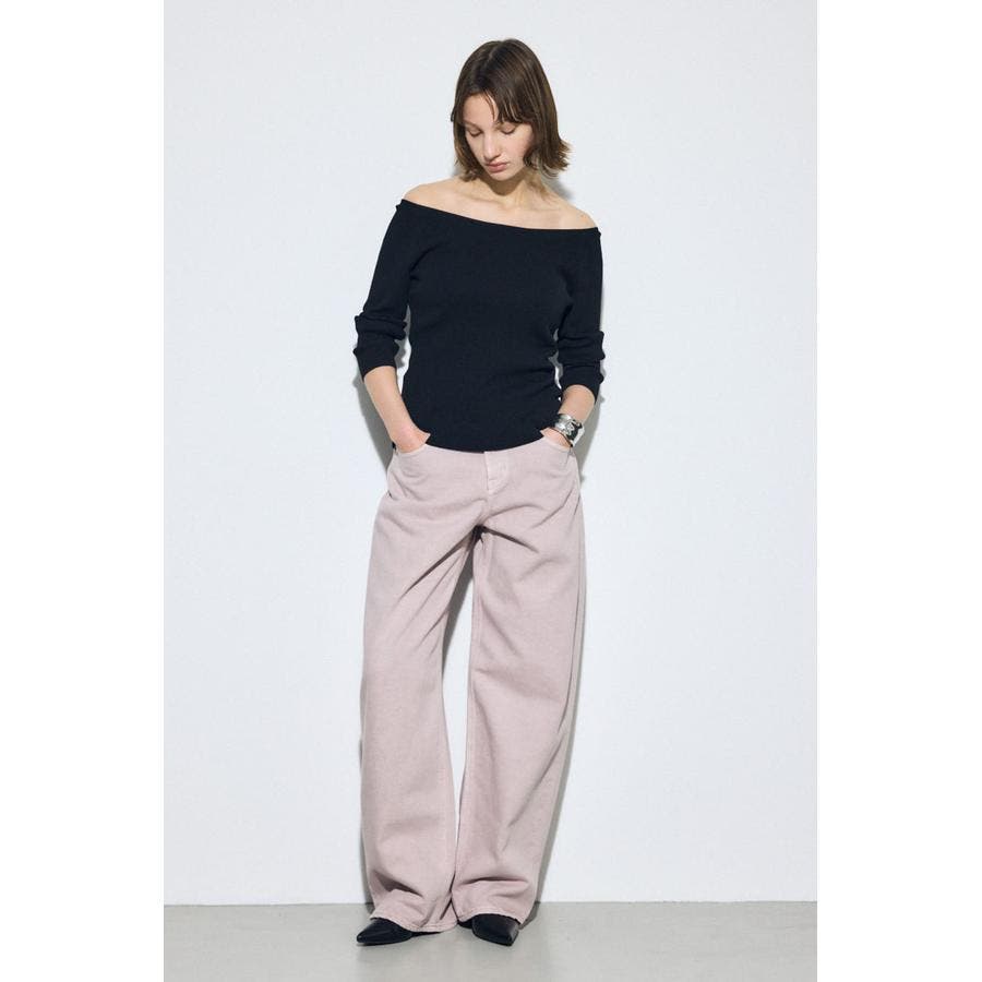 ずれにくい安定感のあるオフショルデザインで、安心して着用できます。