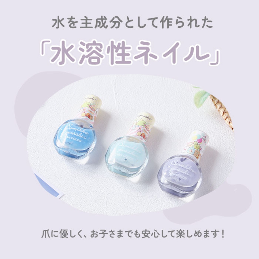・水を主成分として作られたマニキュア。爪に優しく、お子さまでも安心して楽しめるのがポイント!