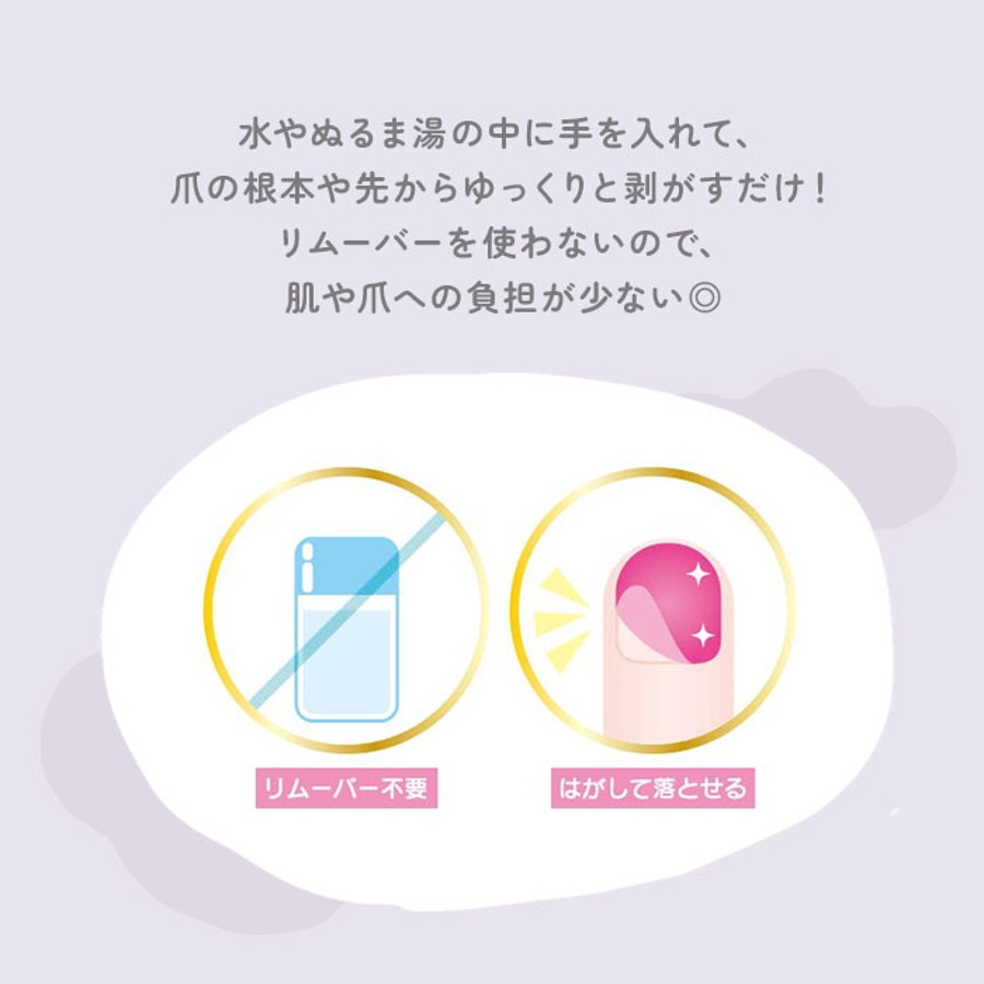 ・落とす時はリムーバー要らず◎水またはぬるま湯で、根本からゆっくり剥がすだけ。