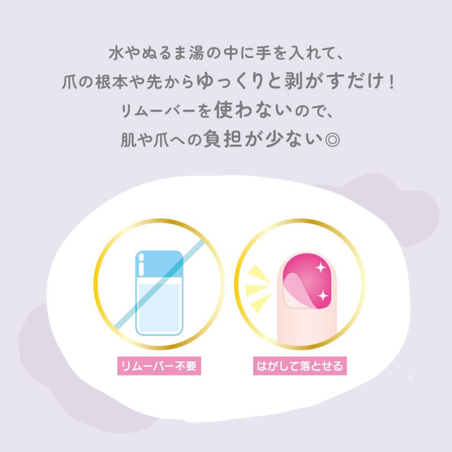 ・落とす時はリムーバー要らず◎水またはぬるま湯で、根本からゆっくり剥がすだけ。