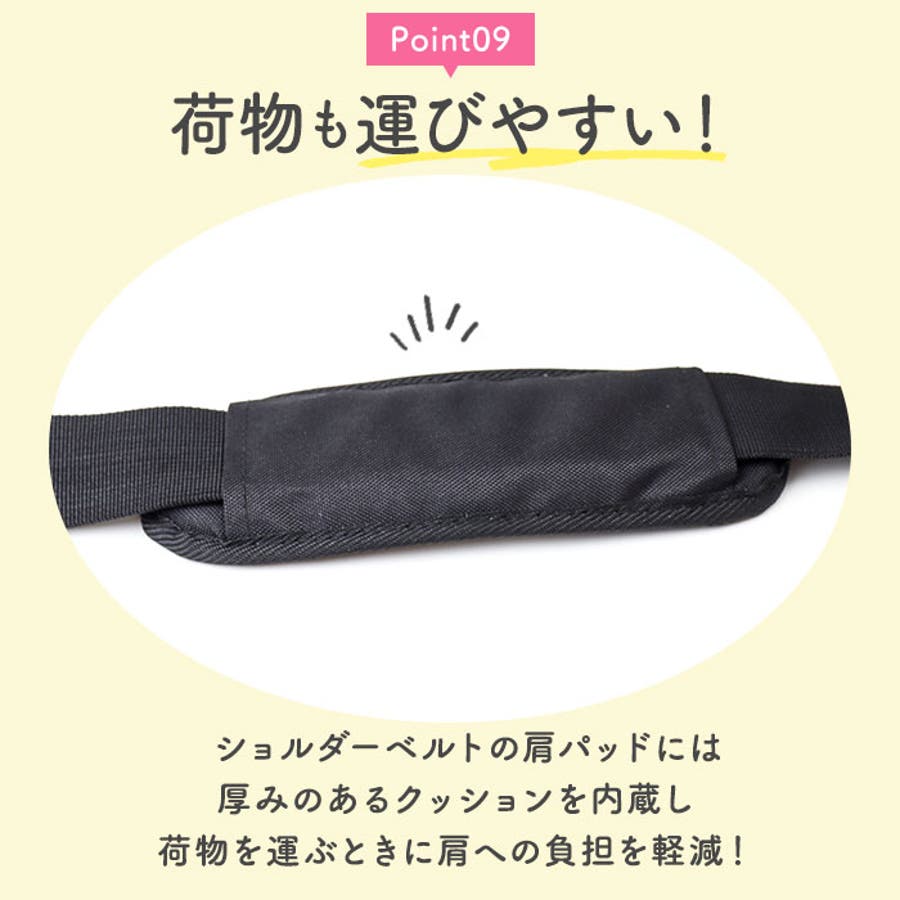 ・ショルダーベルトの肩パッドには厚みのあるクッションを内蔵し肩への負担を軽減☆