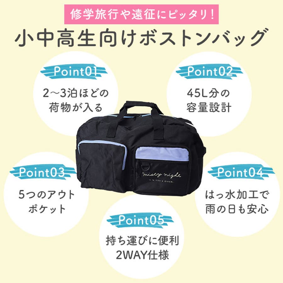 【キーワード】ボストンバック トラベルボストン ボストン バッグ 旅行用バッグ 旅行カバン 旅行 鞄 かばん 2泊3日 45L ショルダーベルト 斜めがけ 女の子 中学生 高校生 子供 こども ジュニア かわいい キッズファッション