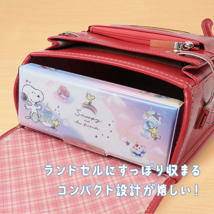 ・ペンケースの横幅は、一般的なランドセルのメイン収納部にピタッと横向きに収納できるサイズ感。ランドセルの中の教科書や荷物もスッキリ!(※ランドセルのサイズによっては収納できない場合がございます。)