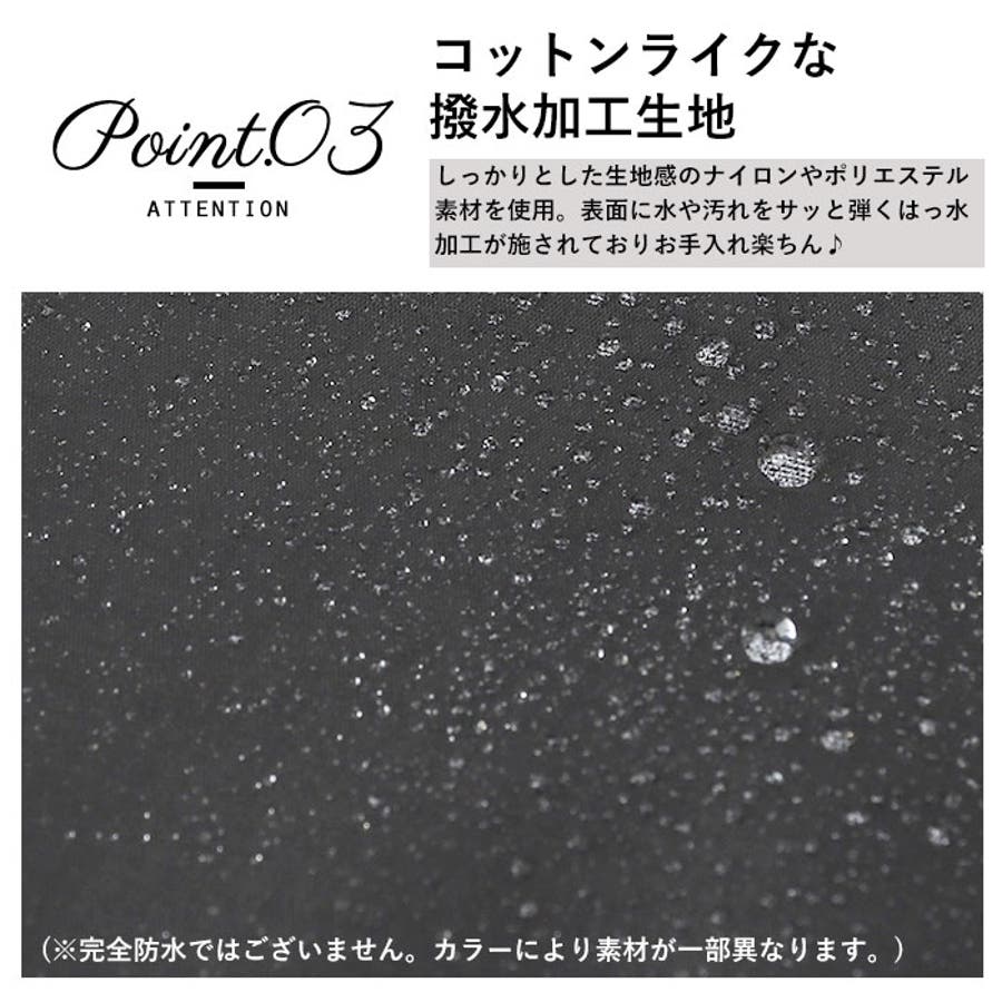 ・しっかりとした生地感のナイロン素材を使用。表面に水や汚れをサッと弾くはっ水加工が施されているから、急な雨でも安心。(※完全防水ではありません。)