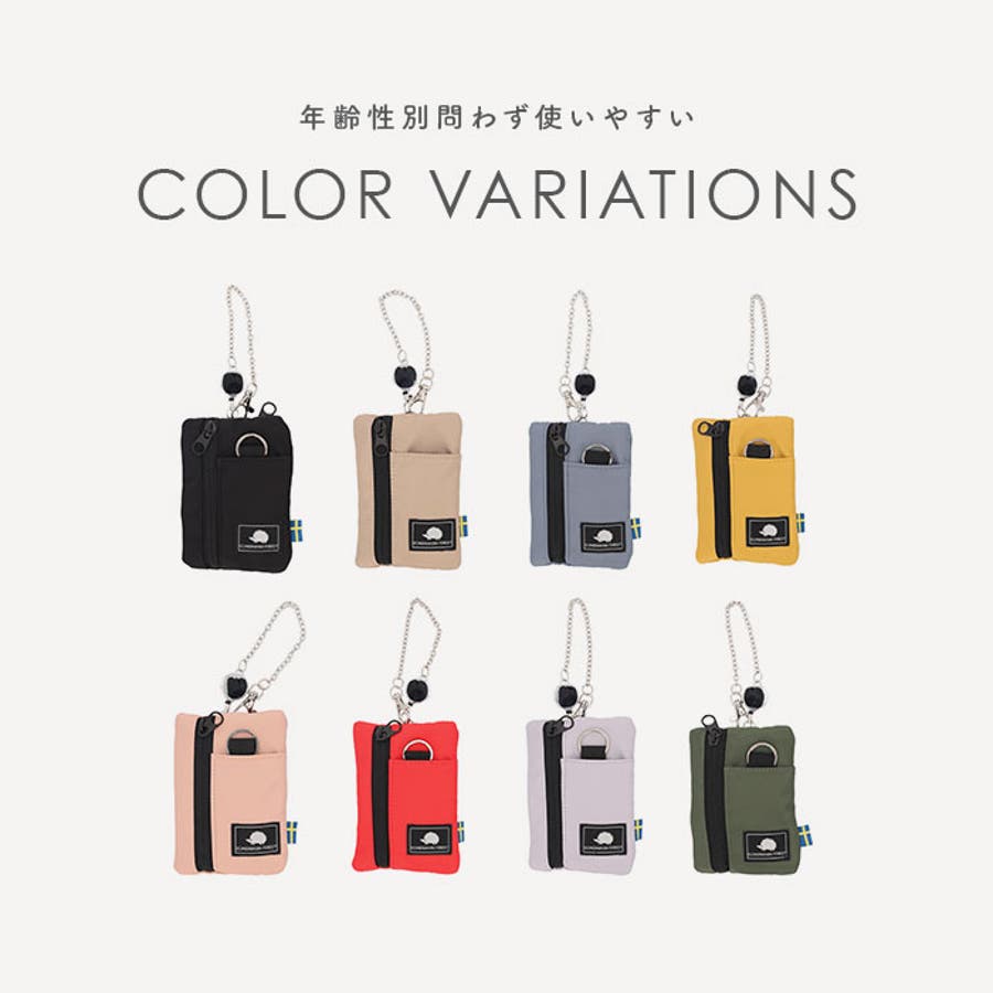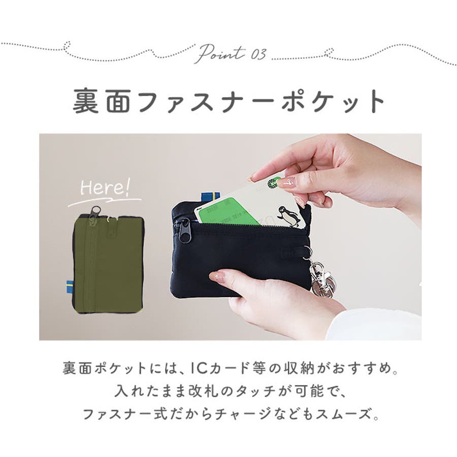・ナスカンチェーンを使って、バッグに簡単装着。ICカードを収納するパスケースとしても活躍。