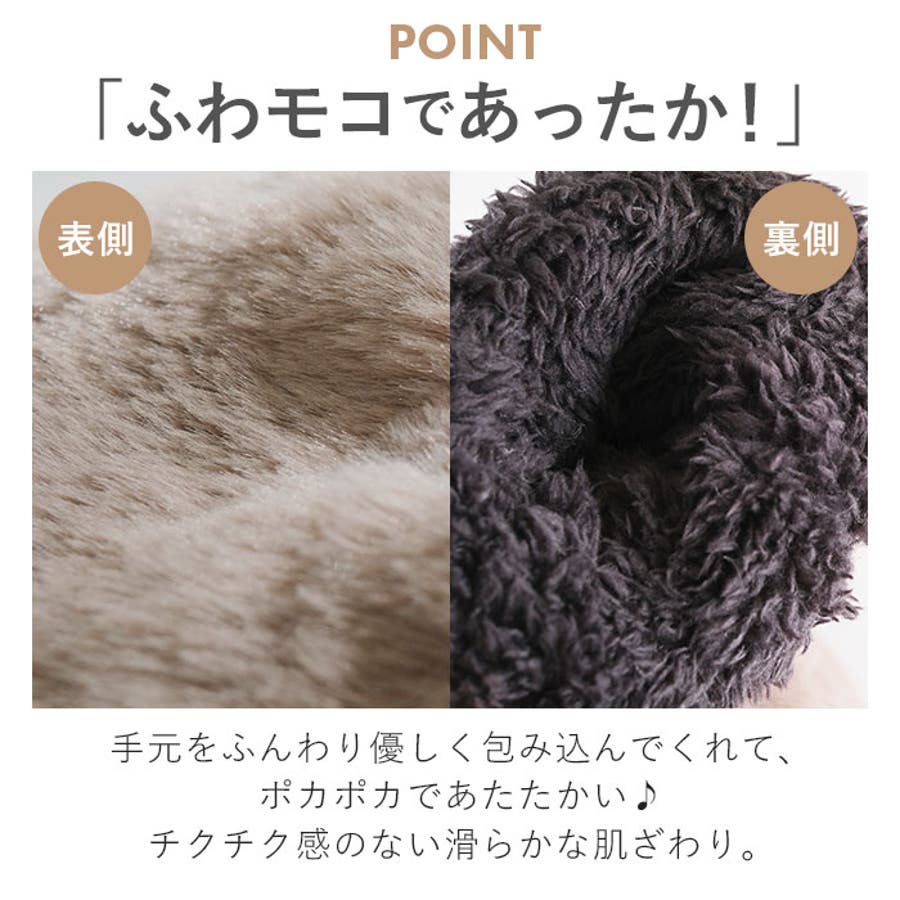 ・手元をふんわり優しく包み込んでくれて、ポカポカあたたかい♪チクチク感のない滑らかな肌触り。