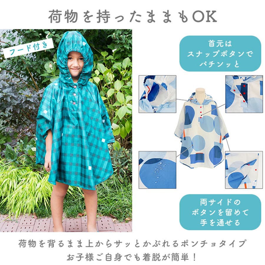 【キーワード】レインポンチョ カッパ 雨具 サイズ S 80 90 100cm 子供用 KIDS キッズ 男の子 女の子 男女兼用 巾着付き おしゃれ 392plusm サンキューニプラスエム チェック 水玉 三国 ミクニ レイングッズ