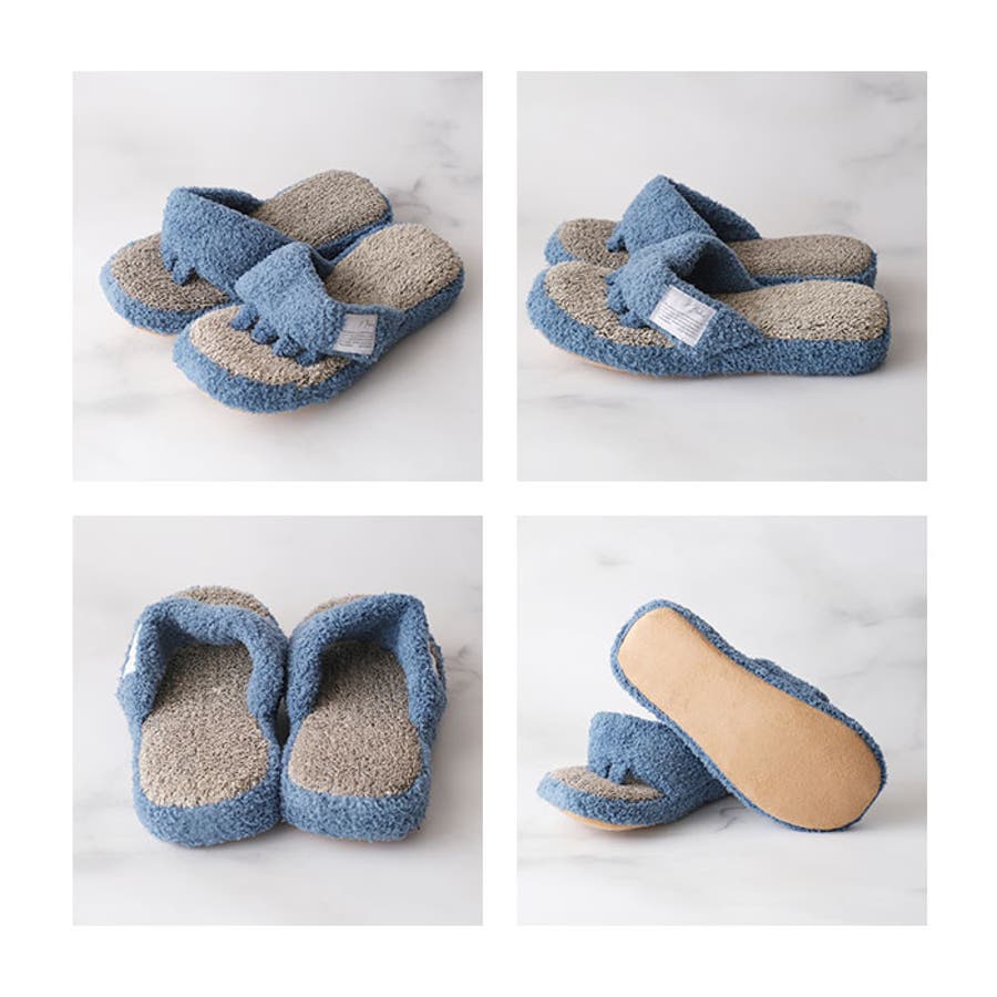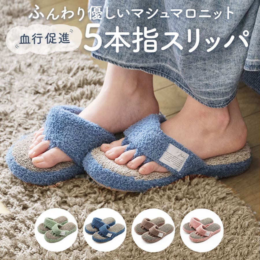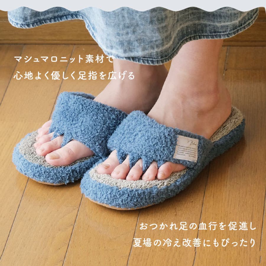 ・マシュマロニットの柔らか素材が足指の間を優しく広げてくれる、5本指タイプのスリッパ。普段は靴で窮屈になっている足指を気持ちよく開放してあげよう!