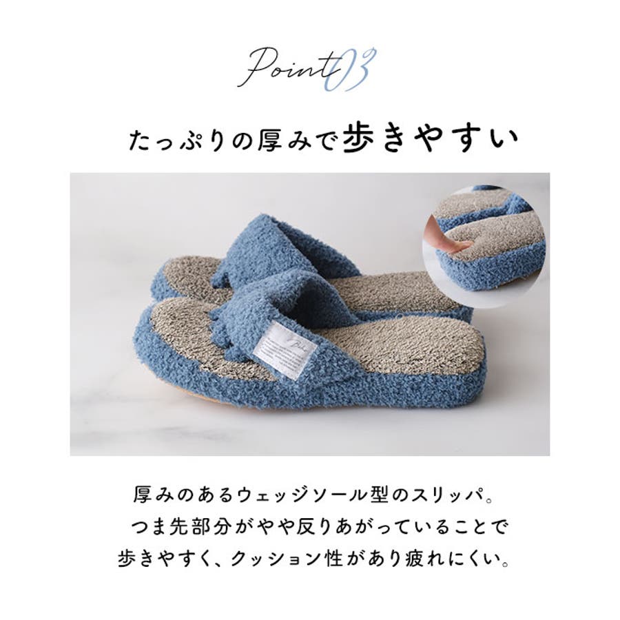 ・ソール部分は厚みのあるウェッジソール型のスリッパ。クッション性もあるので歩行時の衝撃を吸収し、歩きやすい◎