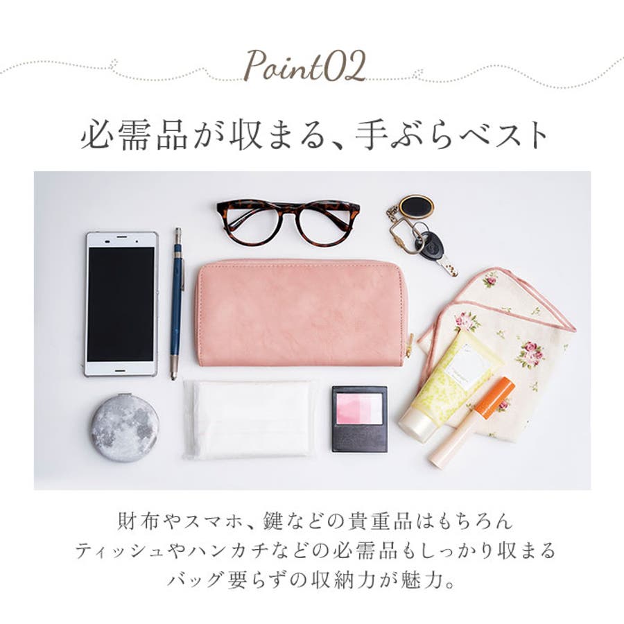 ・外側に2つ、内側に6つの合計8ポケット♪最低限の小物を忍ばせてバッグいらず&忘れ物防止!