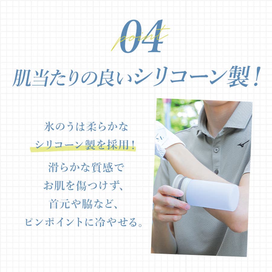 ・氷のうは柔らかなシリコーン製。お肌を傷つけず、首元や脇など、ピンポイントに冷やせる♪