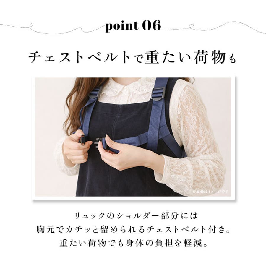 ・チェストベルトやメインルーム直結ファスナーなど機能的な作り♪毎日のお出かけに便利なアイテム。