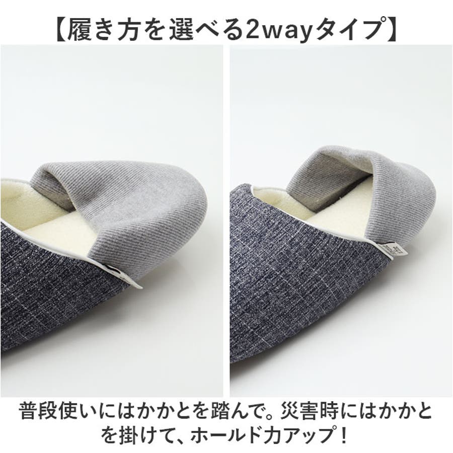 ・普段使いにはかかとを踏んで。災害時にはかかとを掛けて、ホールド力アップ!