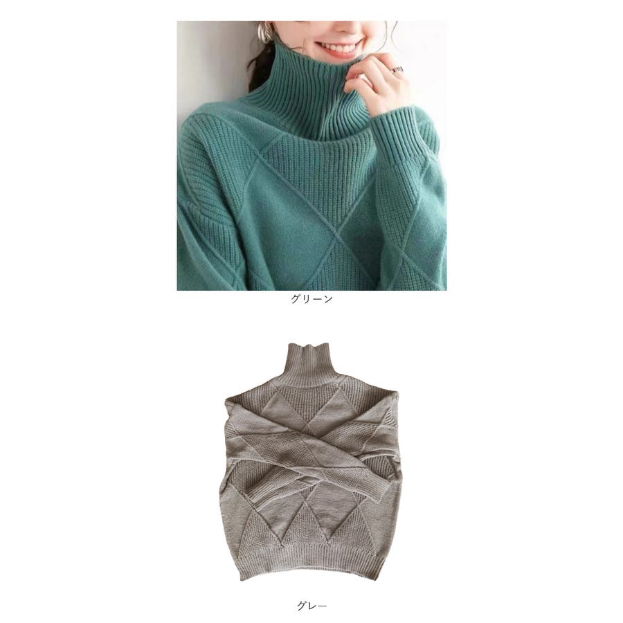 ・ざっくりダイヤ柄がオトナ可愛い♪タートルネックタイプの レディースニット が登場!